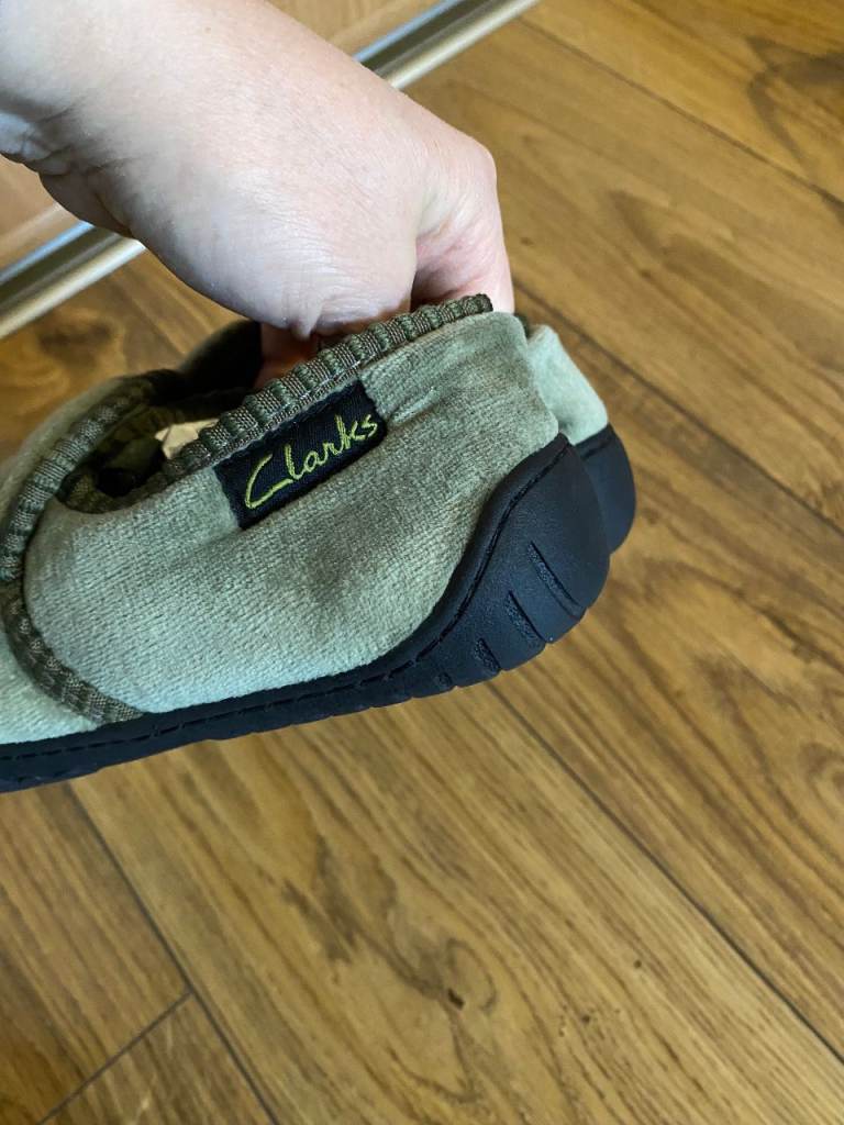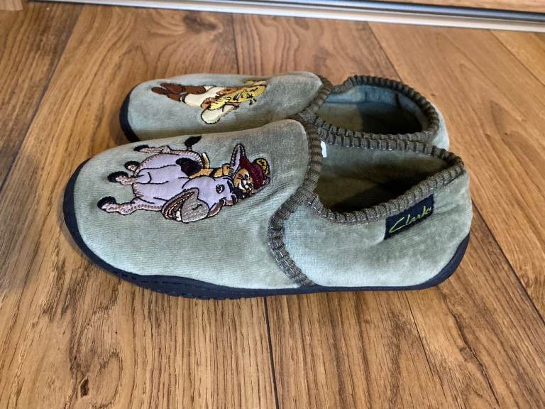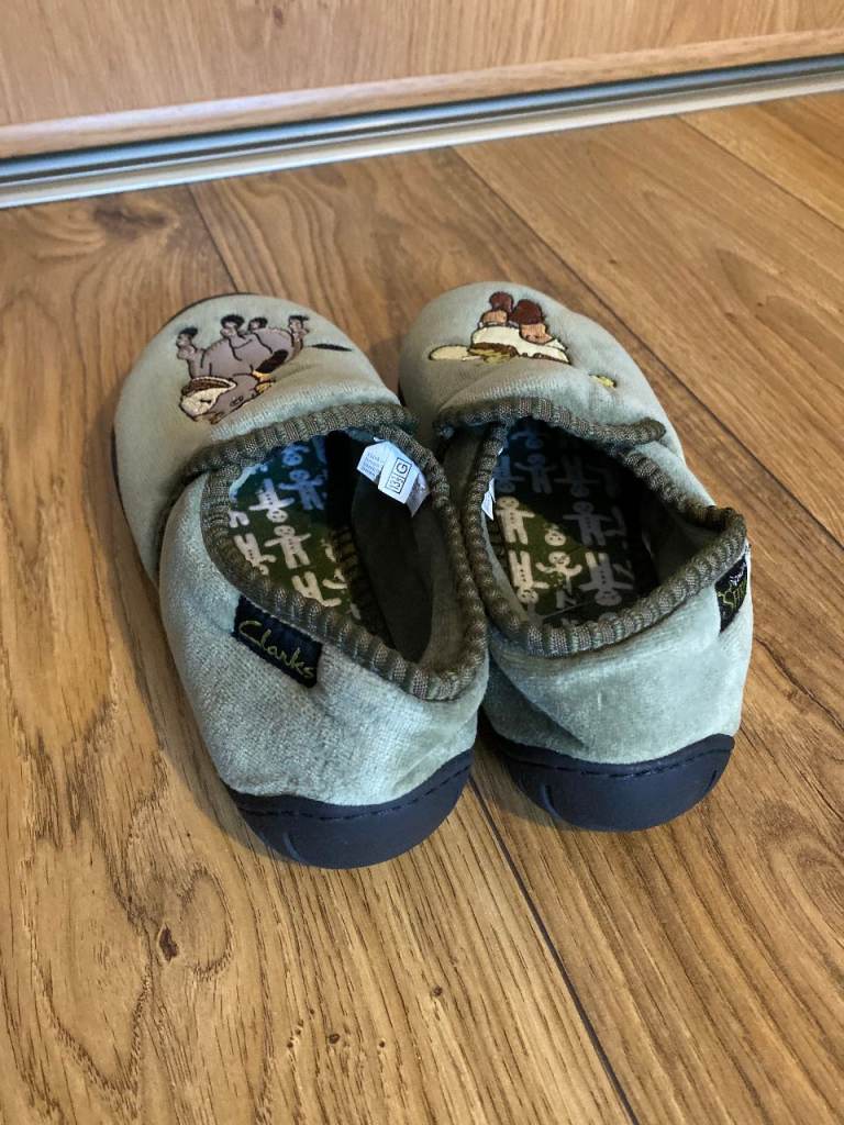 NEW CLARKS KIDS SHREK SLIPPERS (BEEN TRIED ON BUT NOT WORN - STILL HAVE PLASTIC TAG ATTACHED INSIDE ONE SLIPPER)