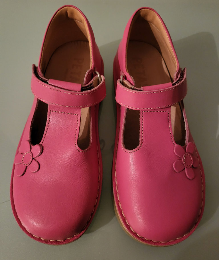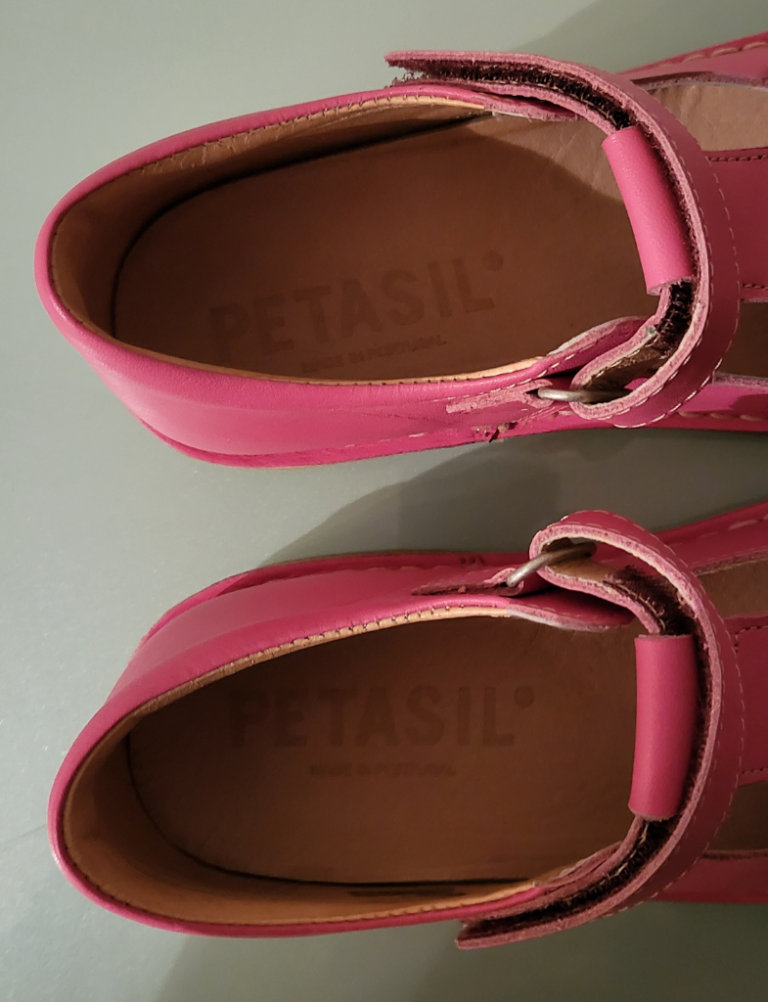 Girls Brand New, Boxed, Bubblegum Pink (The Photograph’s Seem To Show Them As A Dark Pink) Leather T-Bar Shoes From Renowned Portuguese Children’s Designer Footwear Brand PETASIL, In Size UK 1, For Sale.
