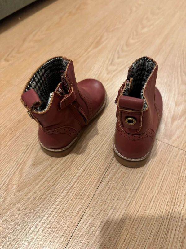 next kids boots – maroon ankle boots with zip and buckle size 5