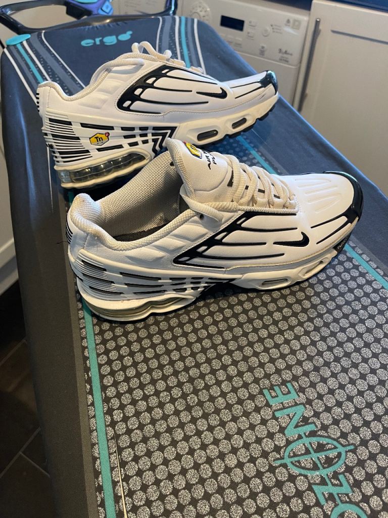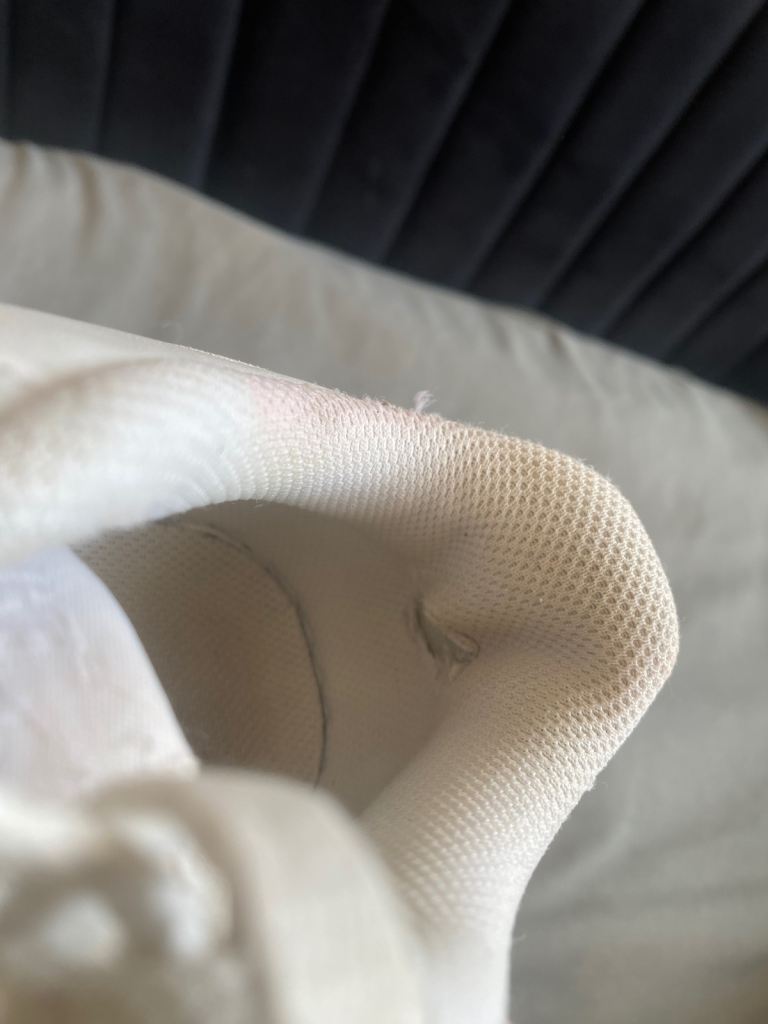They've seen some wear, with minor discolouration on the laces and a slight heal tear inside one shoe.