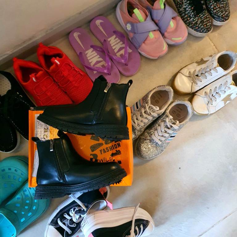 Some of them hardly used converse nike force one.puma etc suitable from 6 to 8 yo size 1.5-2-3 selling as a bundle £30 for the lot.