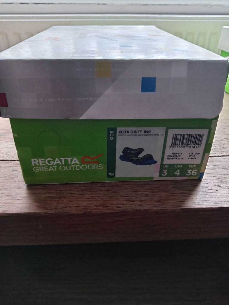 Regatta Kids Jnr sandles UK3 Nautical Blue/Electric Lime. Brand new, tags and boxed. Double velcro straps.