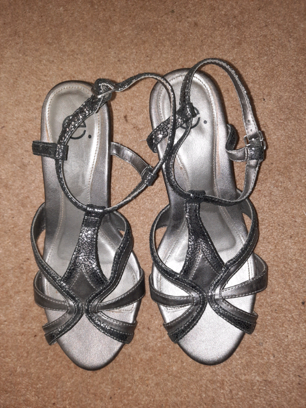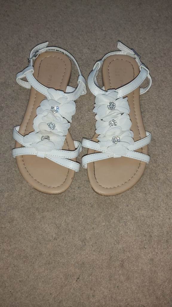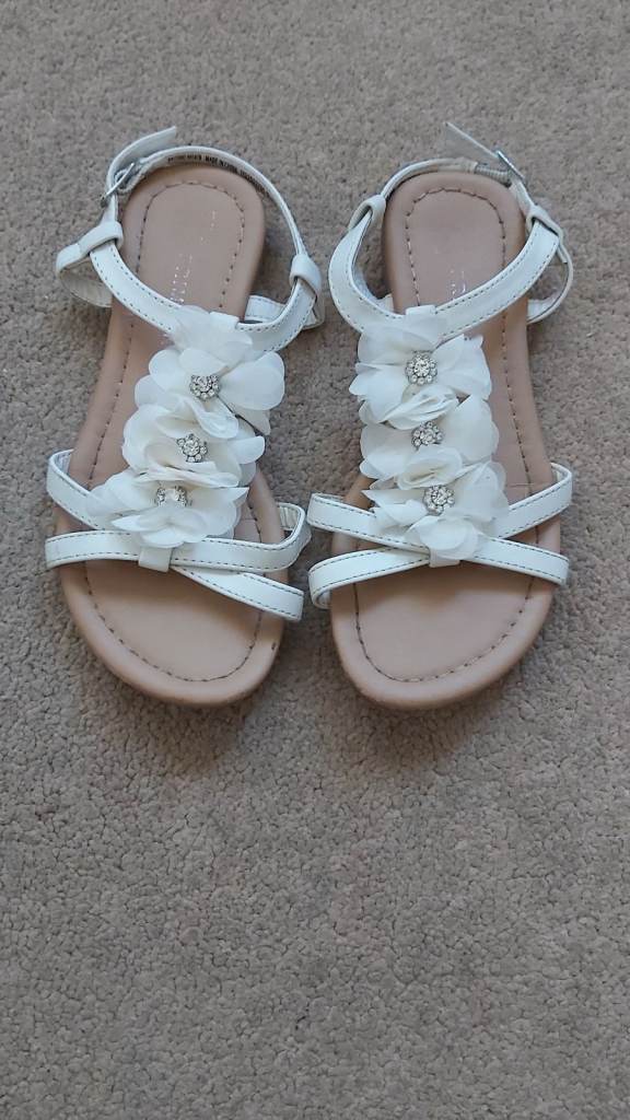 A pair of Cream sandals with 3 x sparkly diamanté and flower detail with straps. Excellent condition.