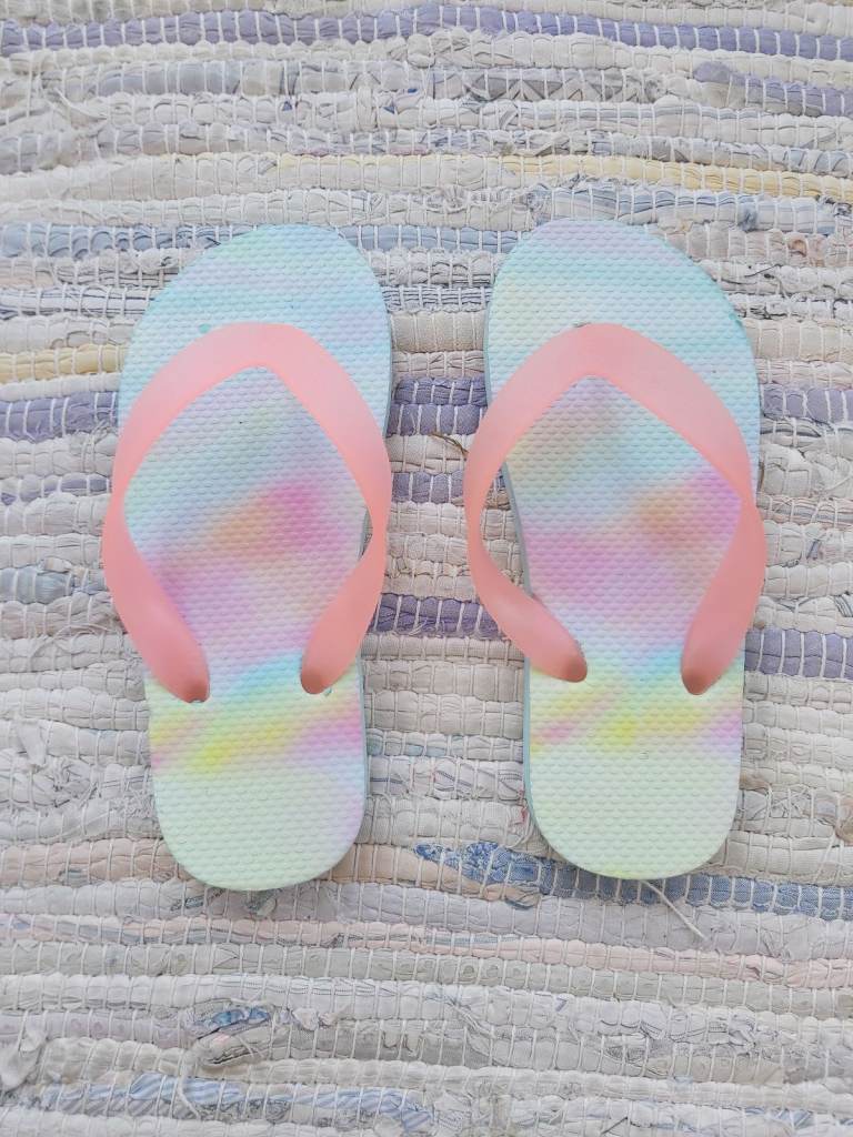 A pair of rainbow coloured flip flops. Fantastic condition. Good as New.