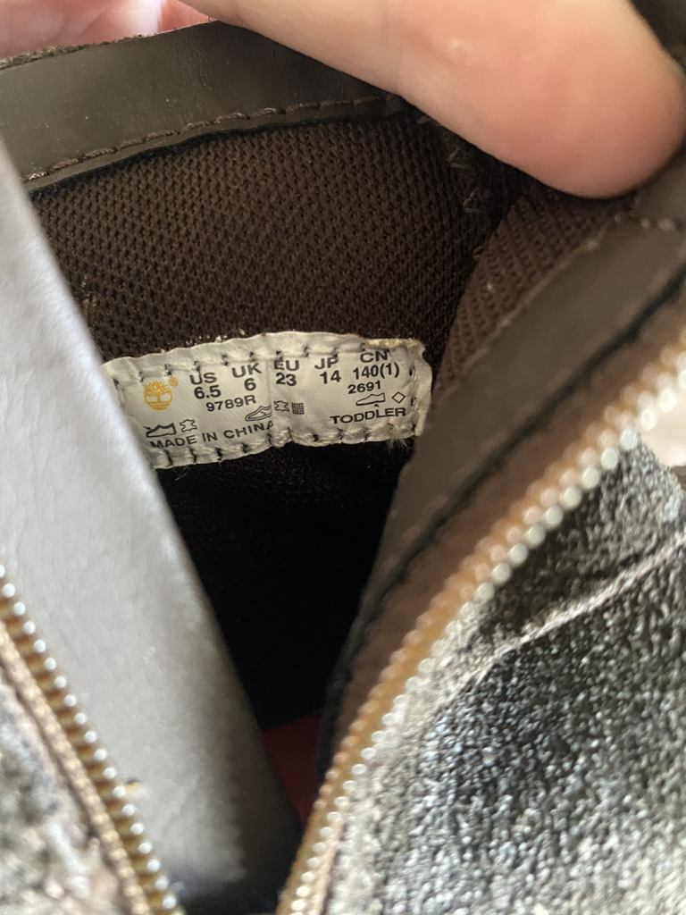 Toddlers Size 6 Timberland boots. New in box with a good sole. Suede with zip and Velcro fastening.