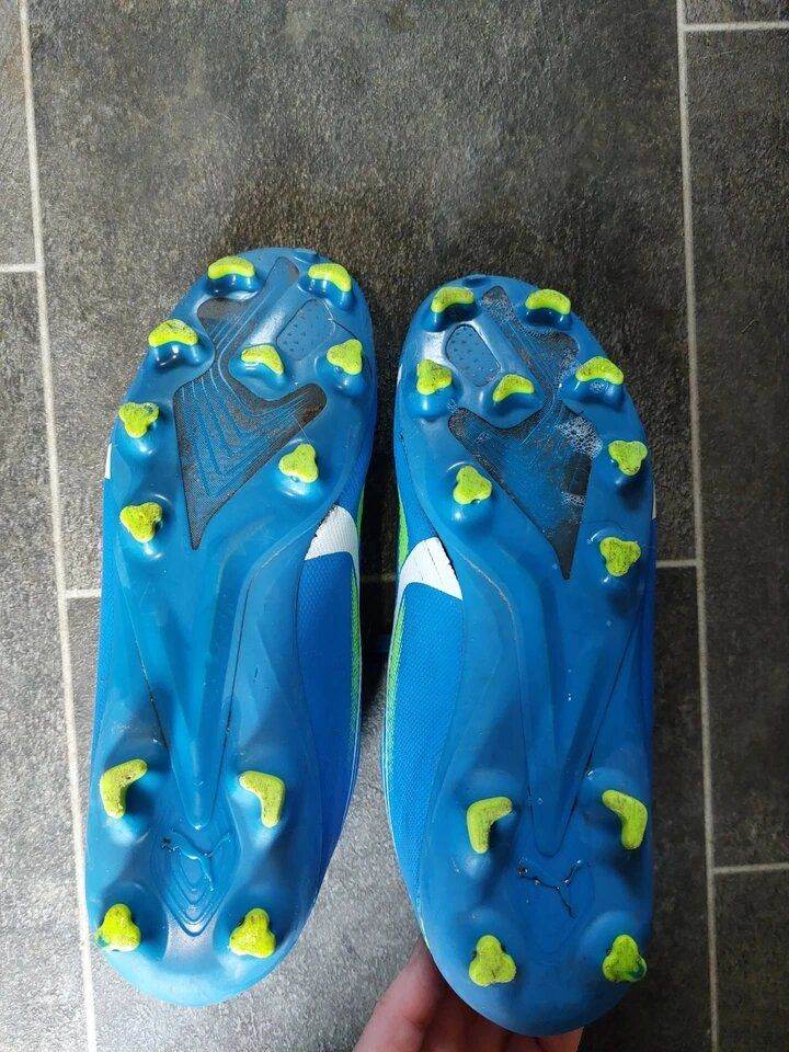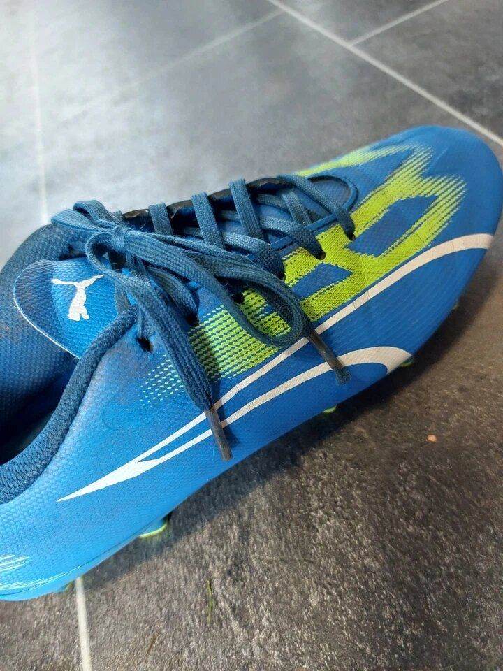 Ultra Blue Puma White Pro Green Unisex MG Football Boots UK Size 4 Junior