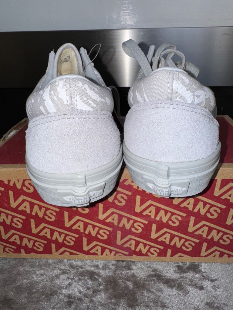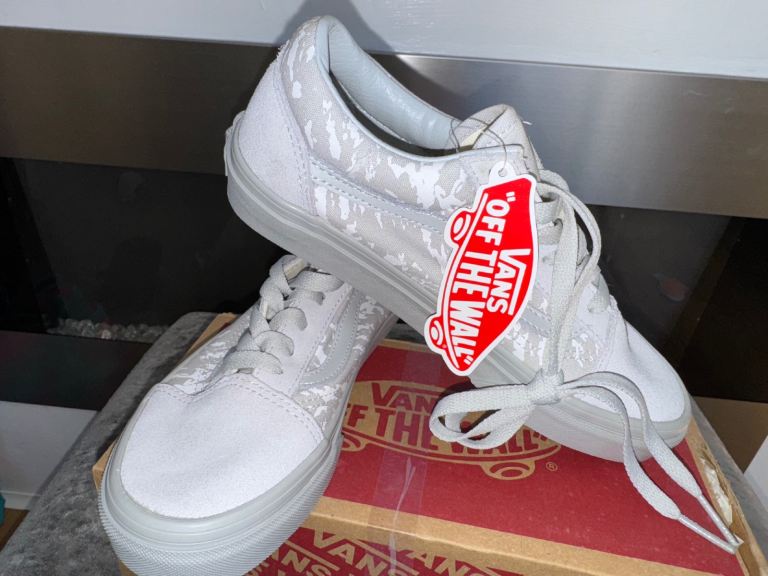 Lace up look with these juniors' Old Skool trainers from Vans. In a grey colourway with a tie-dye panel to the sides, these low-top classics have a lightweight canvas upper with smooth suede overlays for a comfy feel. Featuring an adjustable lace fastening to lock you in place, they're sat on a vulcanised midsole for all-day cushioning. With a grippy Waffle tread outsole, these kicks are finished up with a tonal Sidestripe and signature 'Off The Wall' branding to the bumper plate.