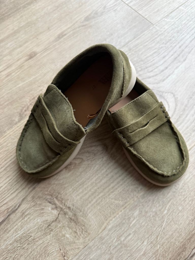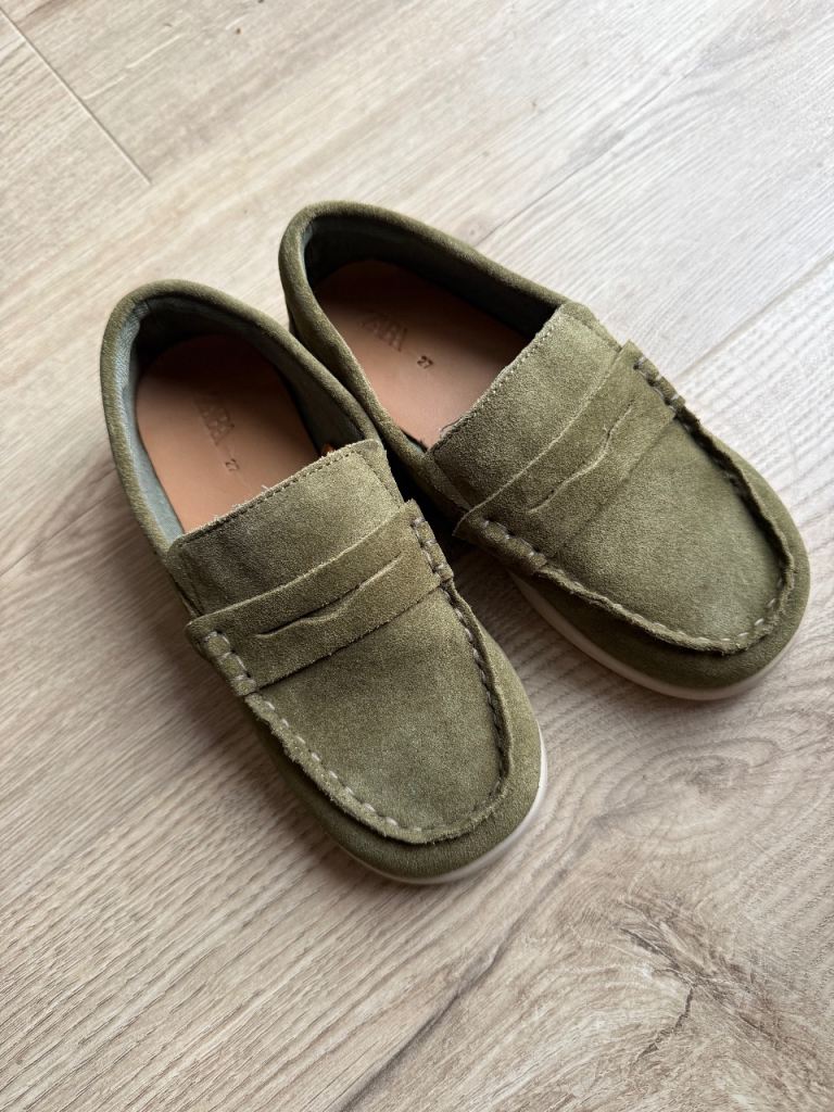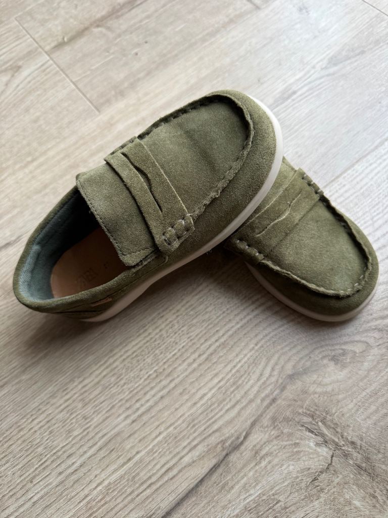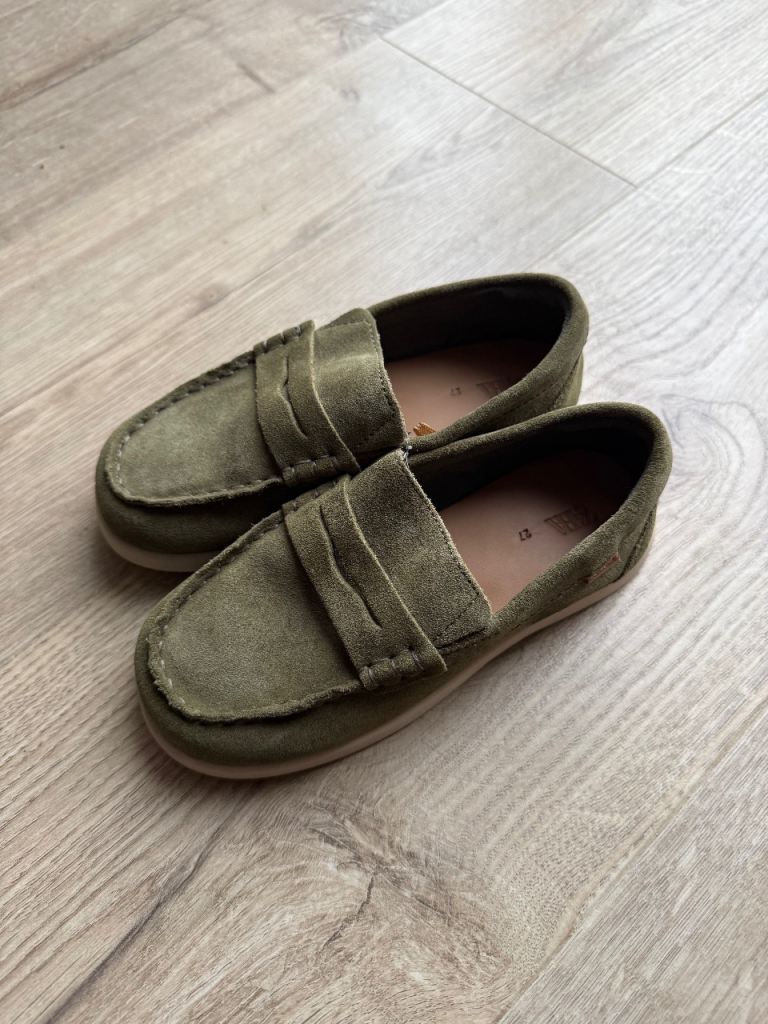 Lovely olive green slip-on loafers from ZARA Kids. Size 27.