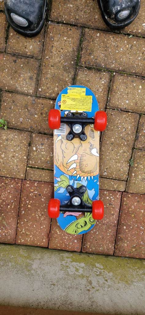 OZBOZZ 17 INCH DECK SKATEBOARD. DINOSAURS ON THE BACK. EXCELLENT.
