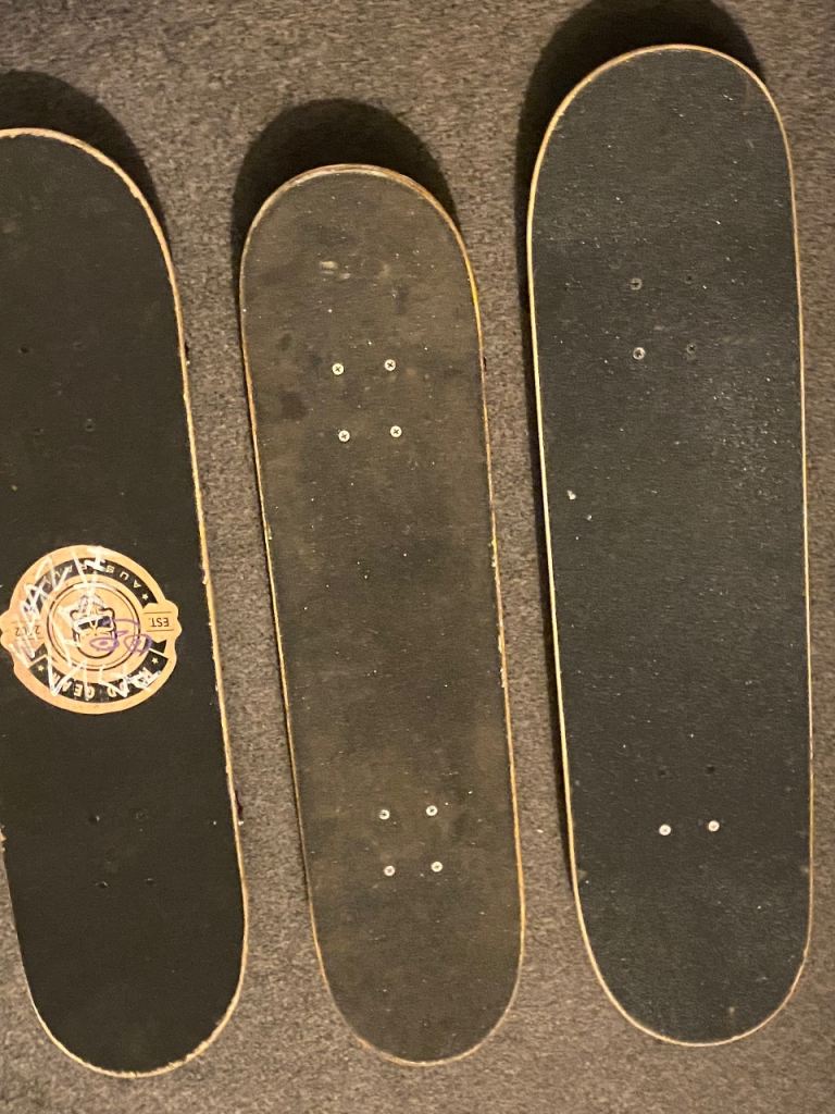 selling 3 skateboards one on the left barely used