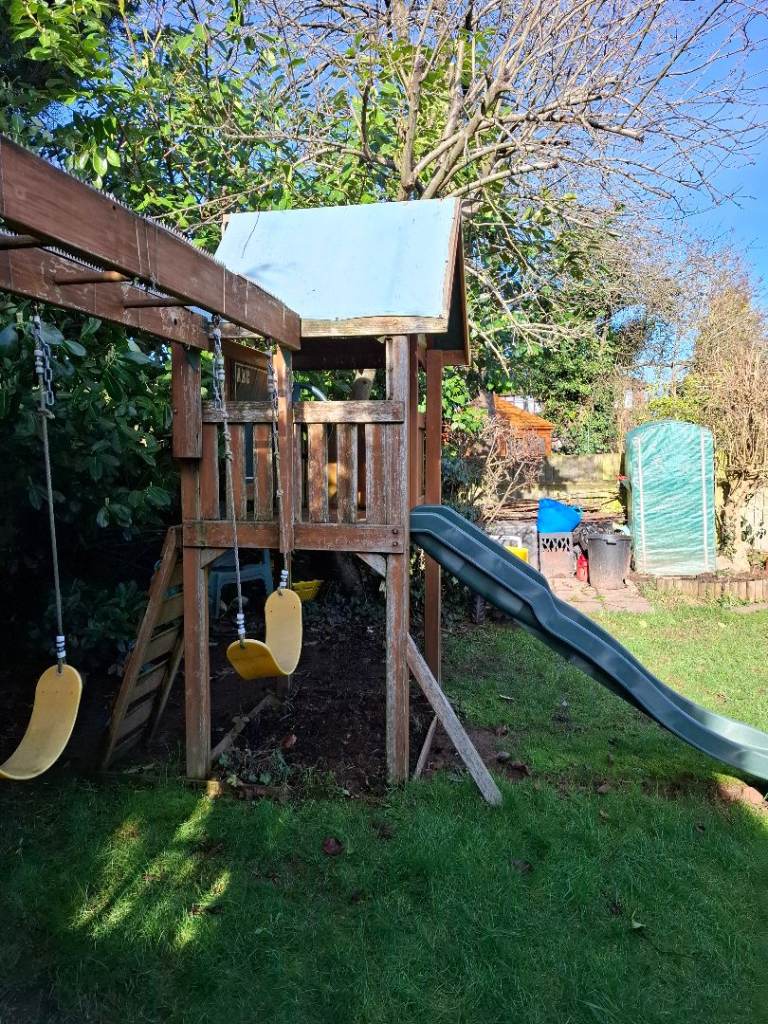 Climbing frame with slide and swings