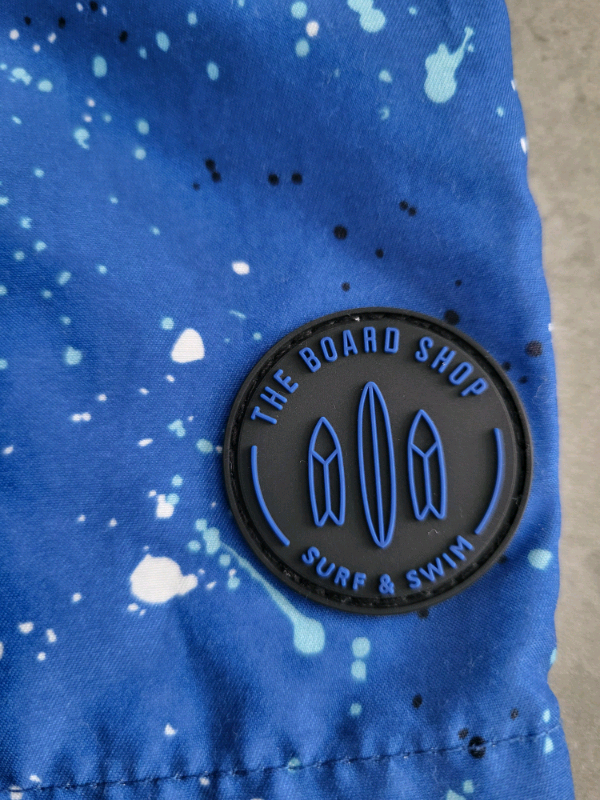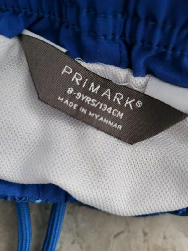 Boys blue swim shorts. Primark aged 8-9yrs. End of the waist string has come off as per the picture bug still functional. Free collection Derby area or can post for additional postage fee of £3.35.