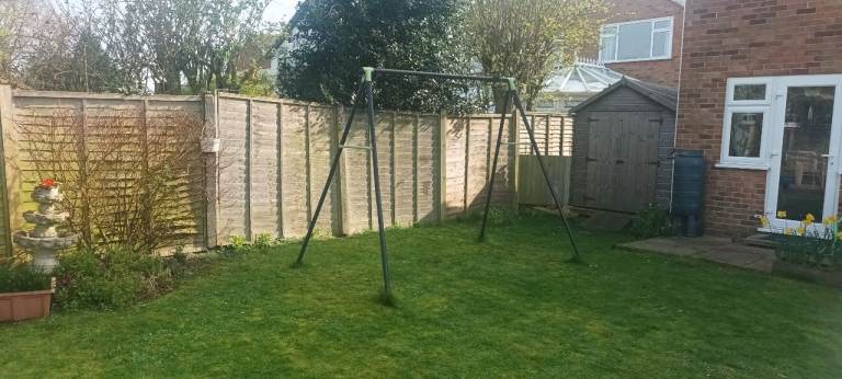 Used metal swing frame, no swings with just frame and fittings for 2 swings and a swing boat. All bolts could be re-used. £5 donation to Thanet Disabled Riding Centre