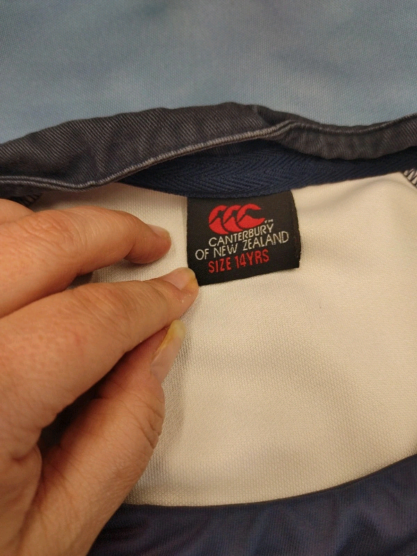 Cardiff Blue Badge on the front and logo for Canterbury on the front as well