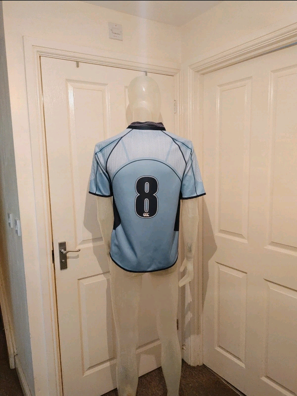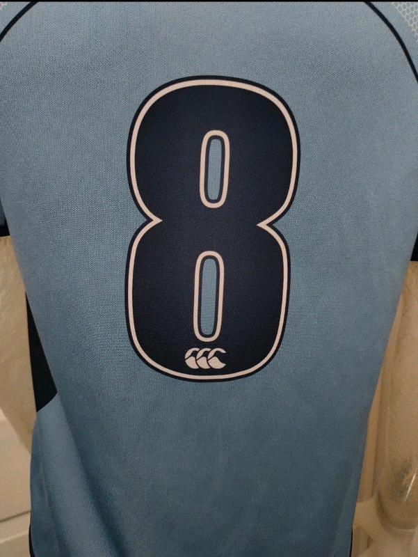 Kids Blue Canterbury Cardiff Rugby Home Shirt No.8 Size 14 Yrs