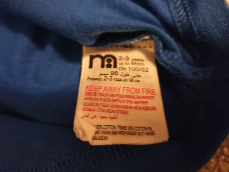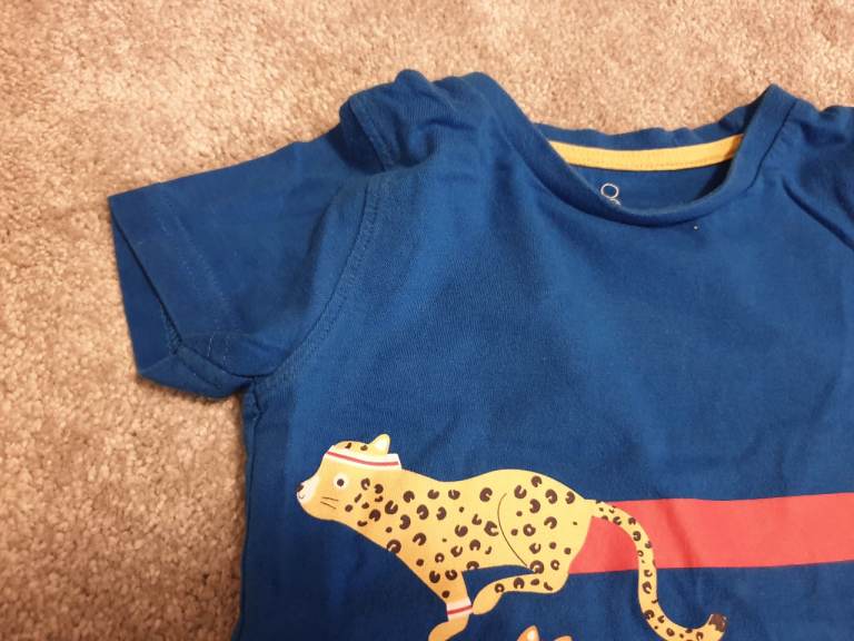 Mothercare Blue Coloured Boys T-Shirt with 1 2 3 animals logo (2-3 years)