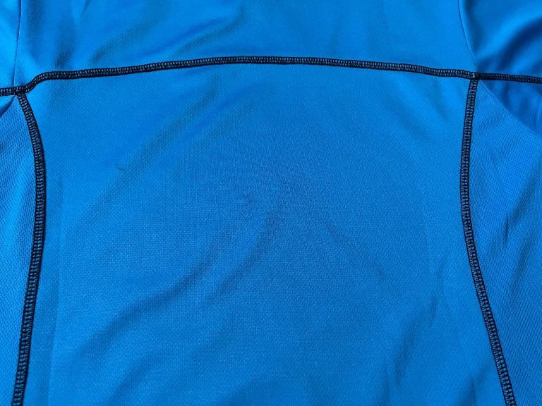 Good condition: one dot of pulled thread on the front, one dot of pulled thread and slight staining at the back- see photos
