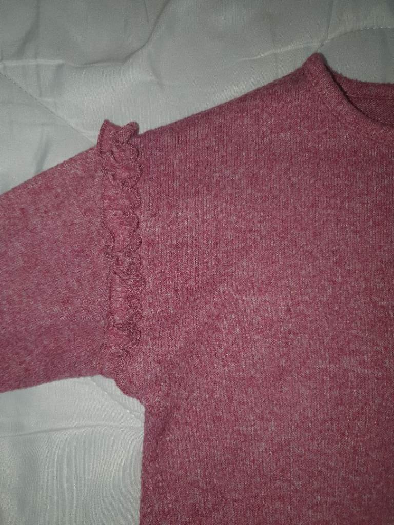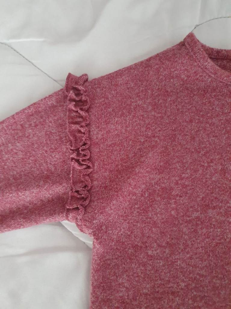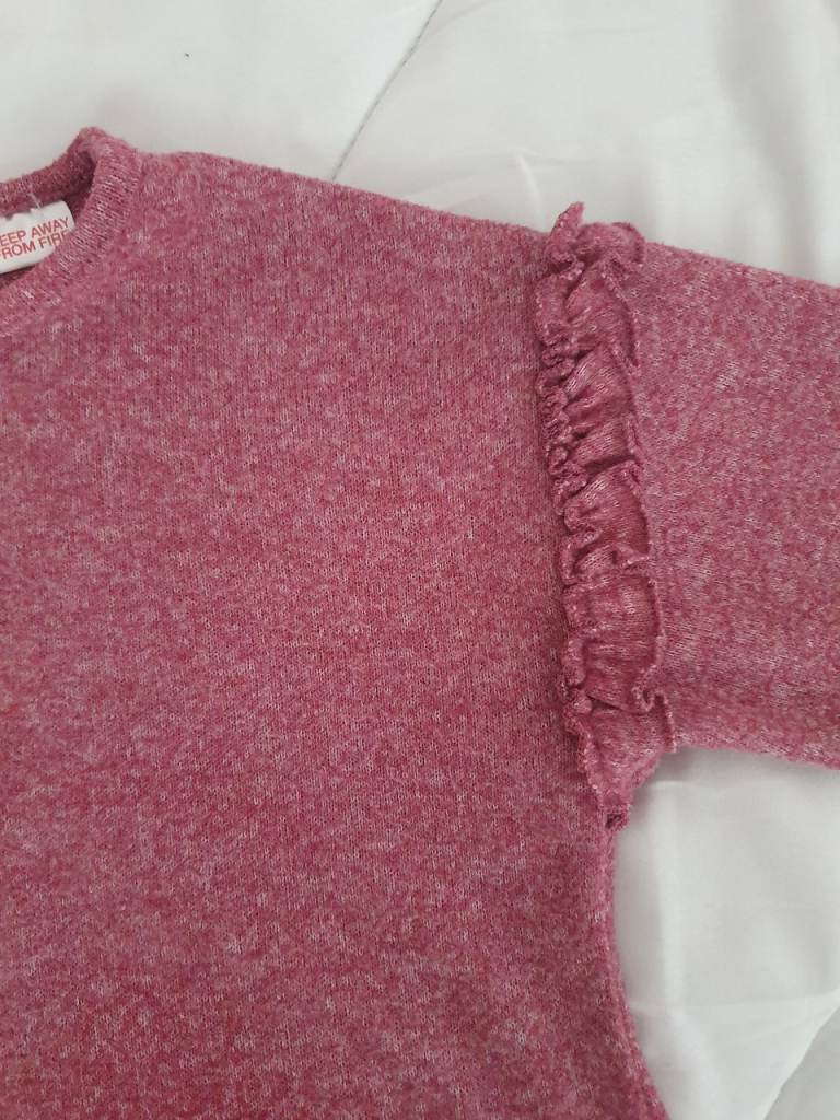 ZARA Girls Pink Purple Frill Long Sleeve Top Sweater Knit Jumper 3 years 98cm