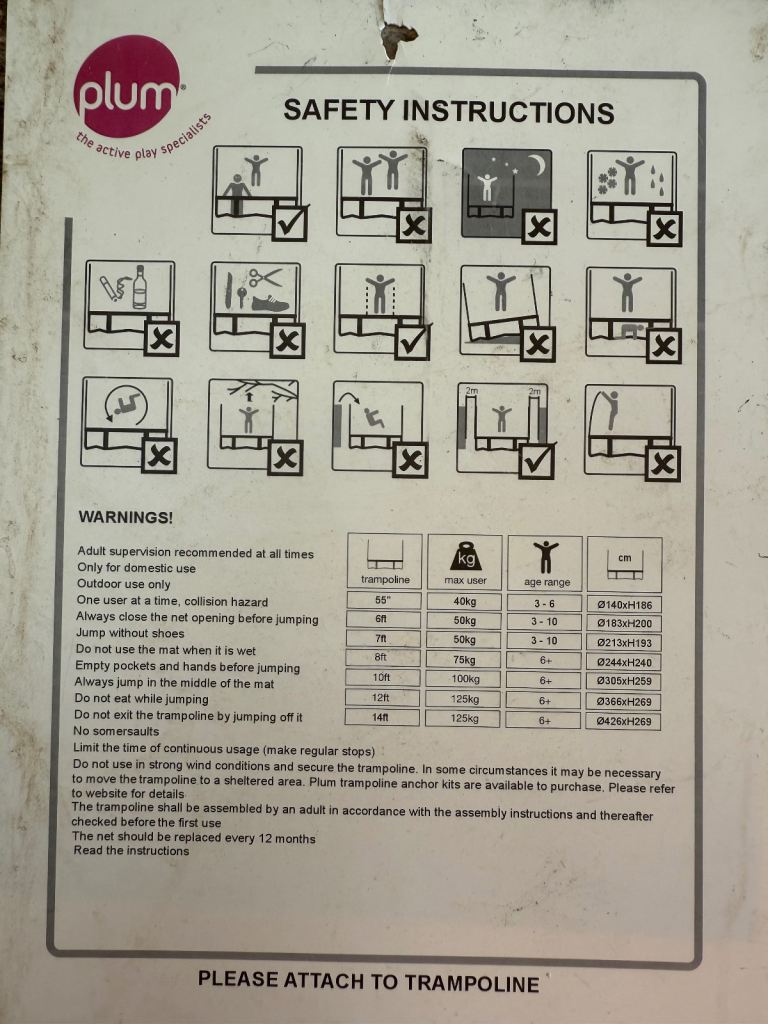 Posting for 14+ years6ft Junior Plum Trampoline - used condition