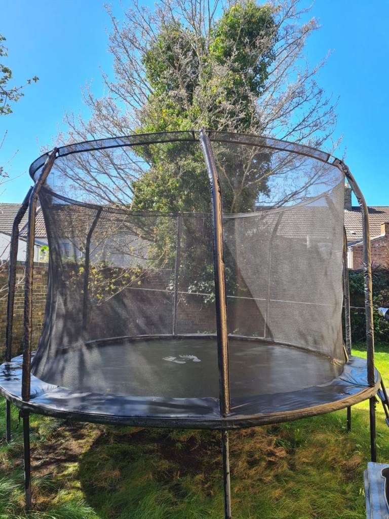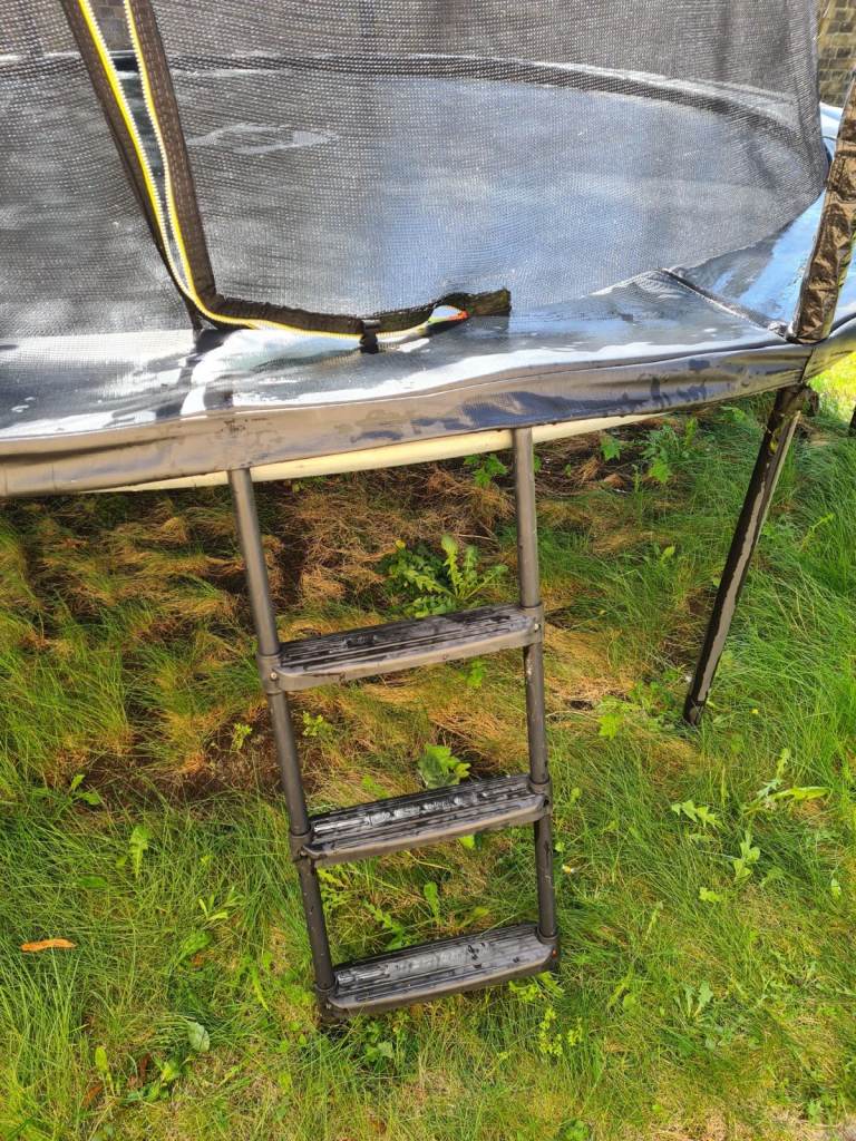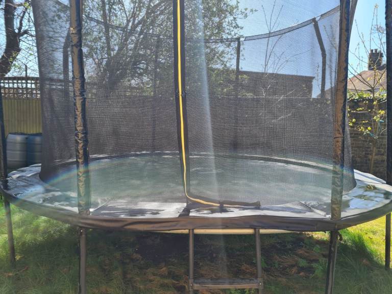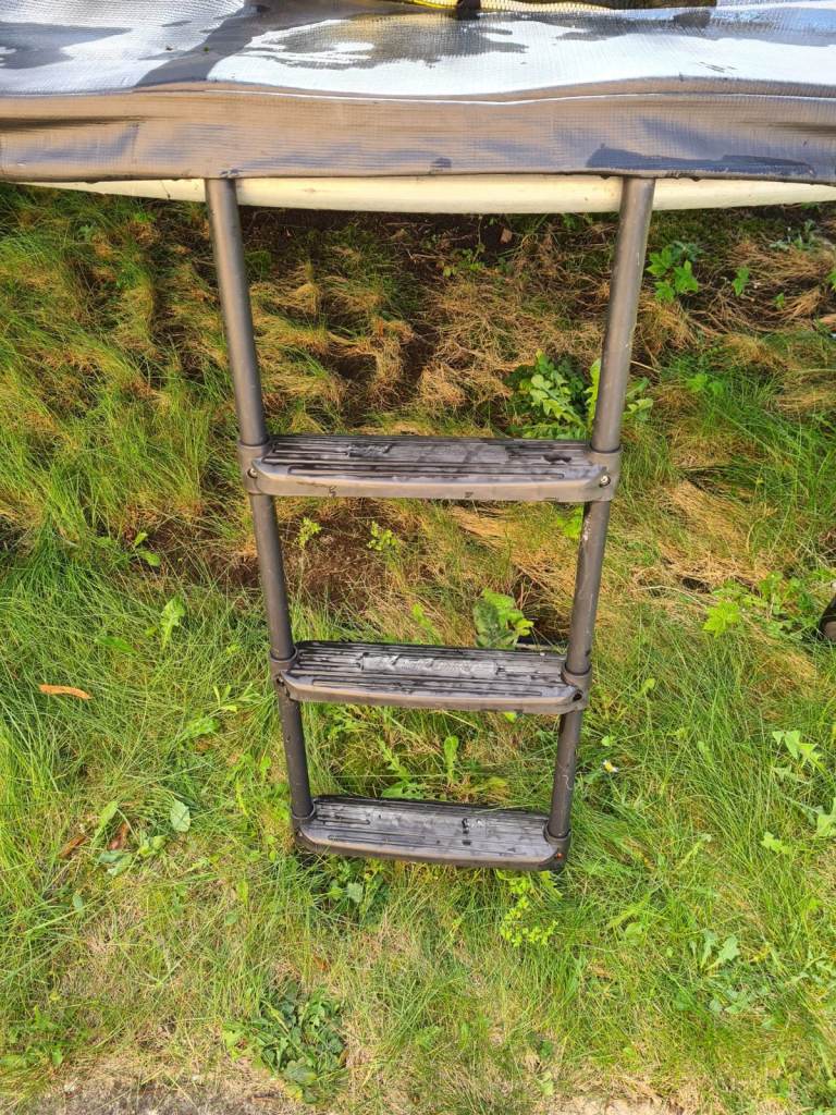 Air League 12ft Powder Coated Trampoline with full Enclosure Black. Upgraded steps. Very good condition. Hardly used. Buyer dismantles to take away, this will help with assembly. Will help if collection evening or weekend.