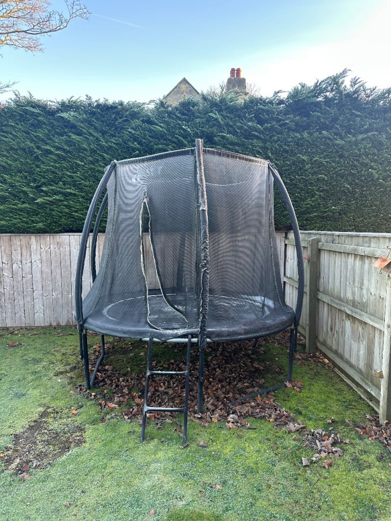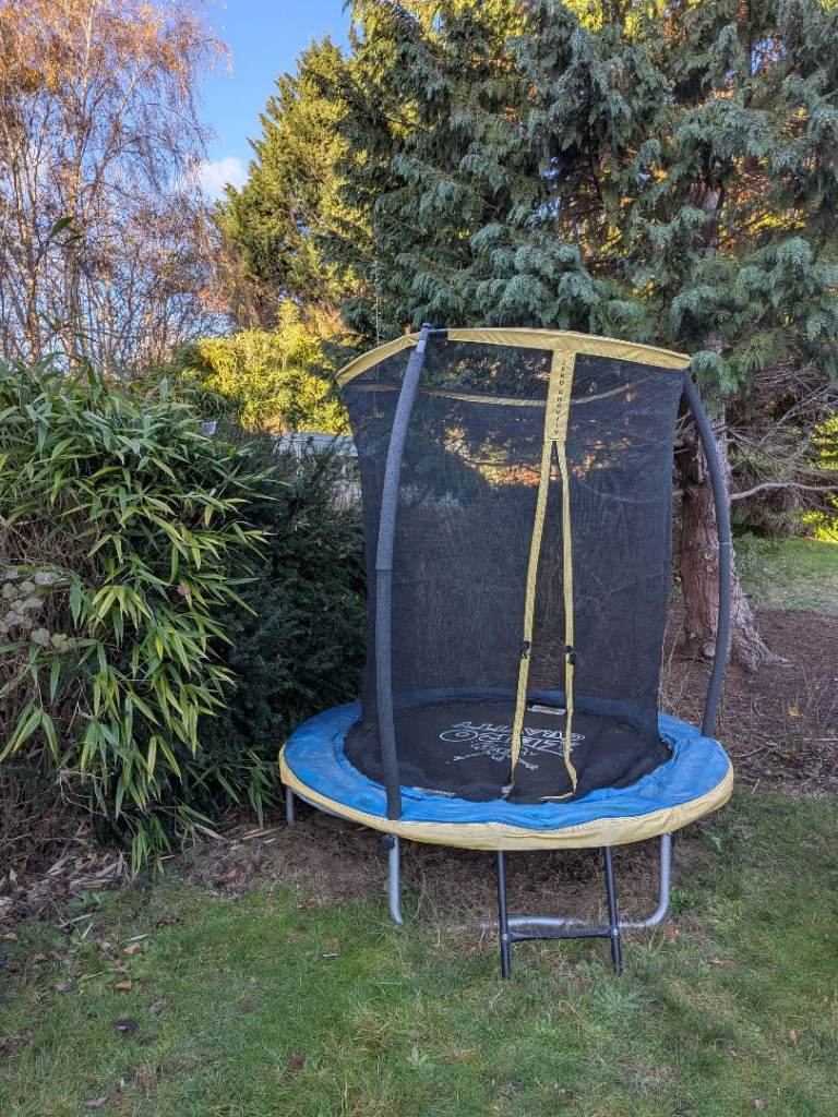 used 6 ft Kanga Trampoline with enclosure. wear and split on the foam inserts at the top. not from use, more being outside. Cleaned and dismantled for collection. Offers received.