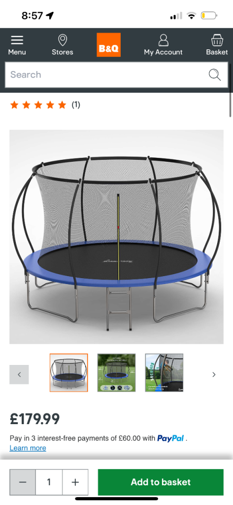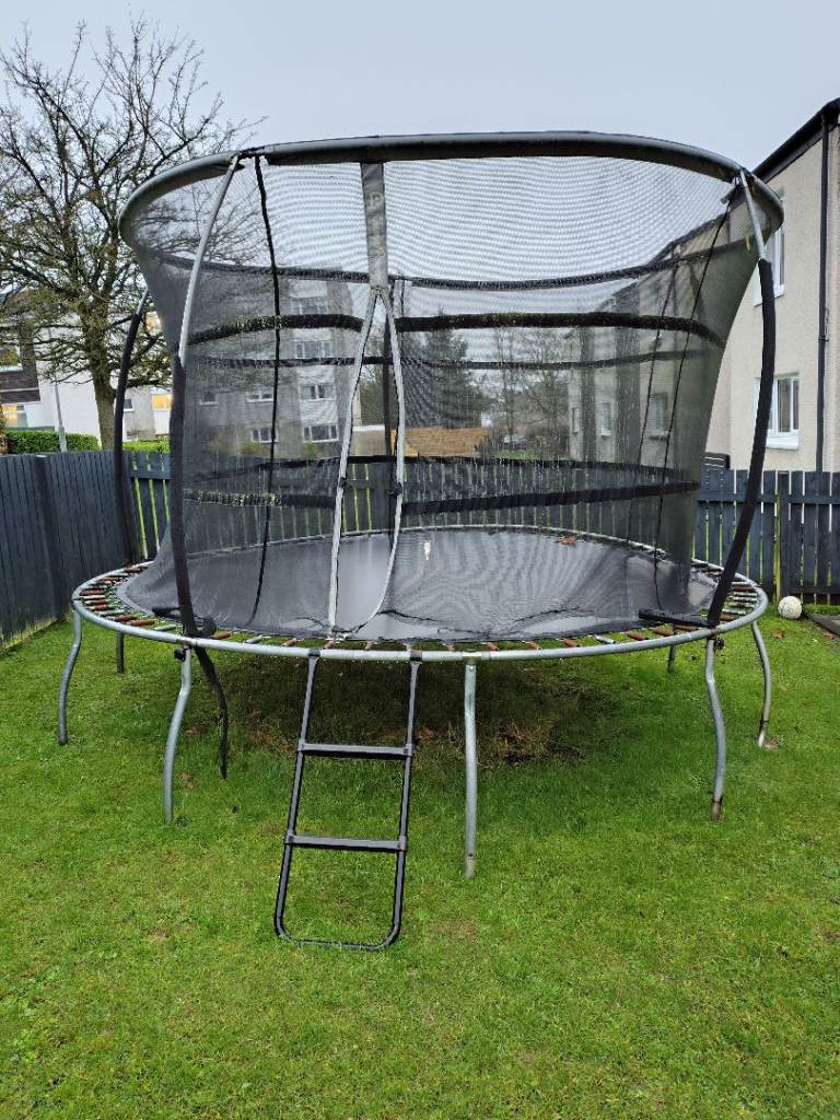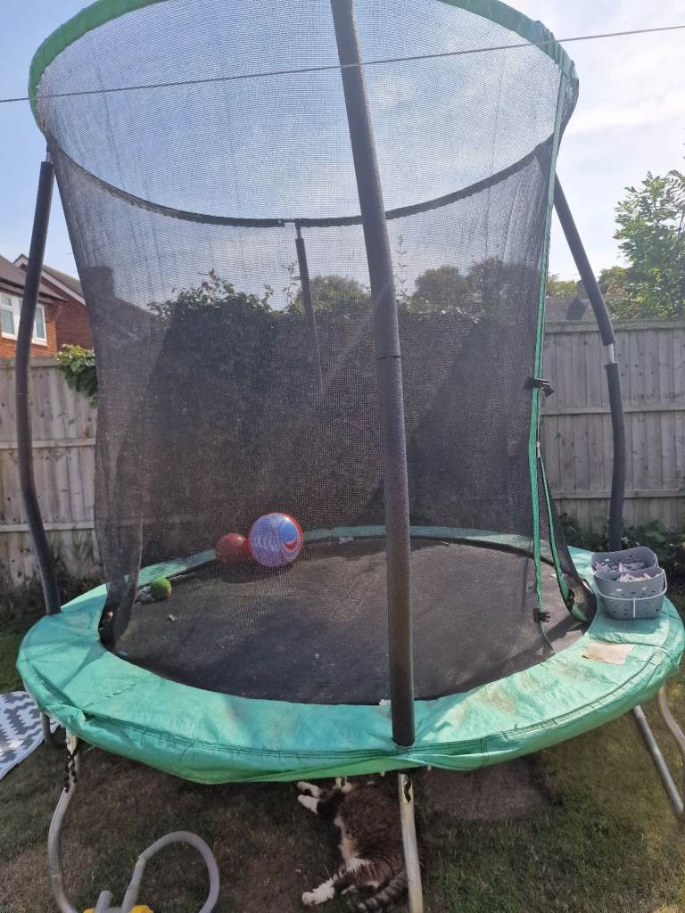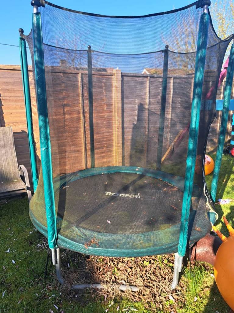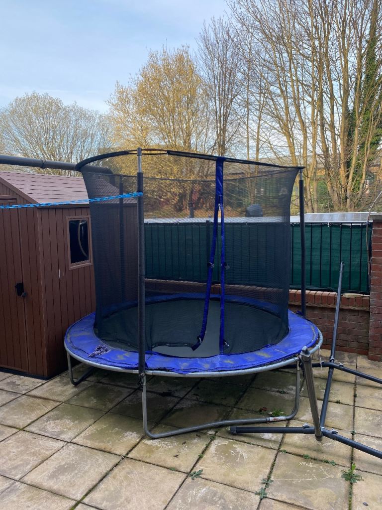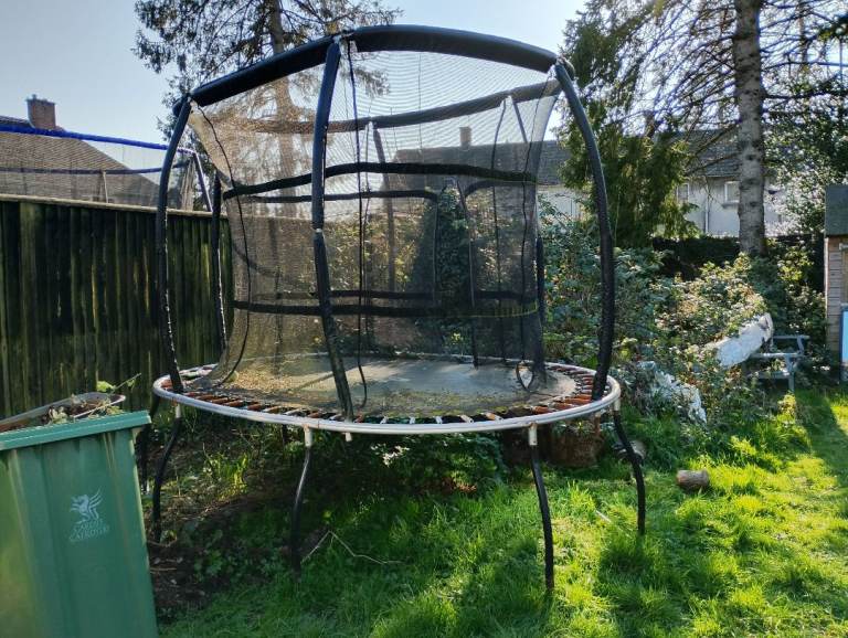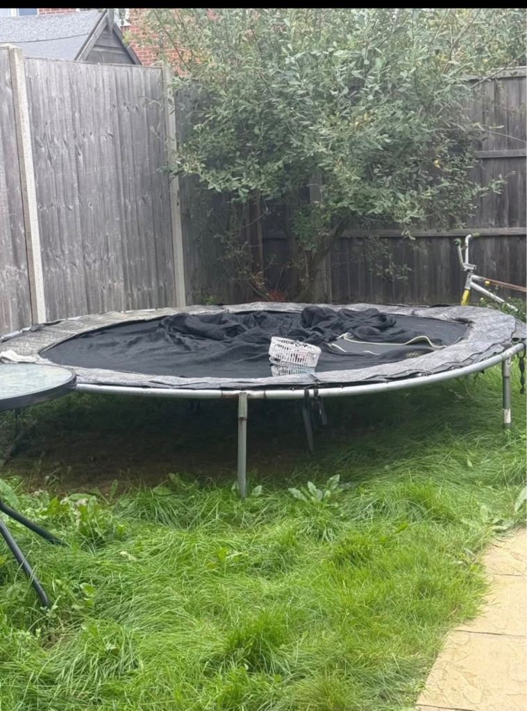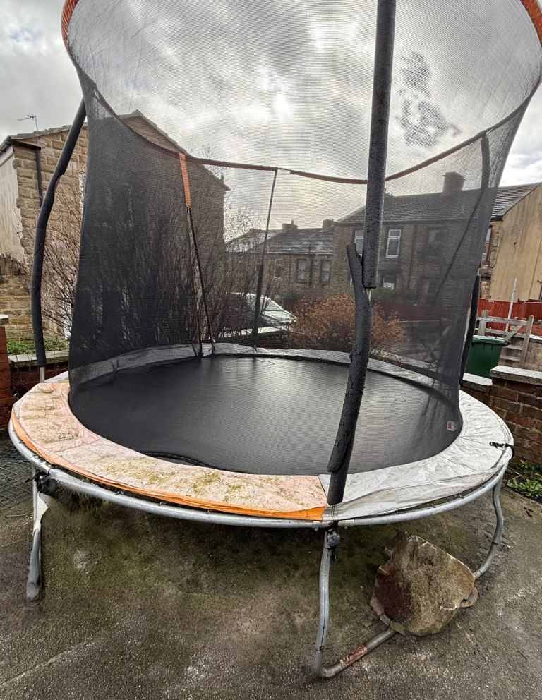 Telstar Vortex Black 10x7 trampoline, used and loved but no longer used. In good condition with some weathering. Side nets, spring cover and trampoline bed all great condition with no zips. Already dismantled and ready for pick up. Still available online RRP is £296.