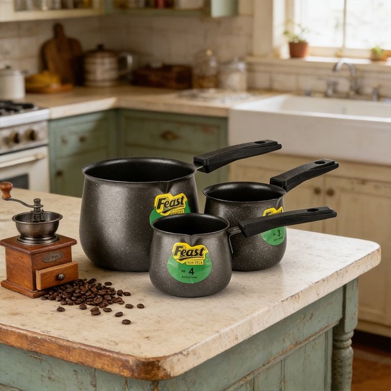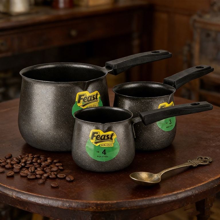 - Complete three-piece ibrik set for coffee brewing, 4,5 & 6 tasses