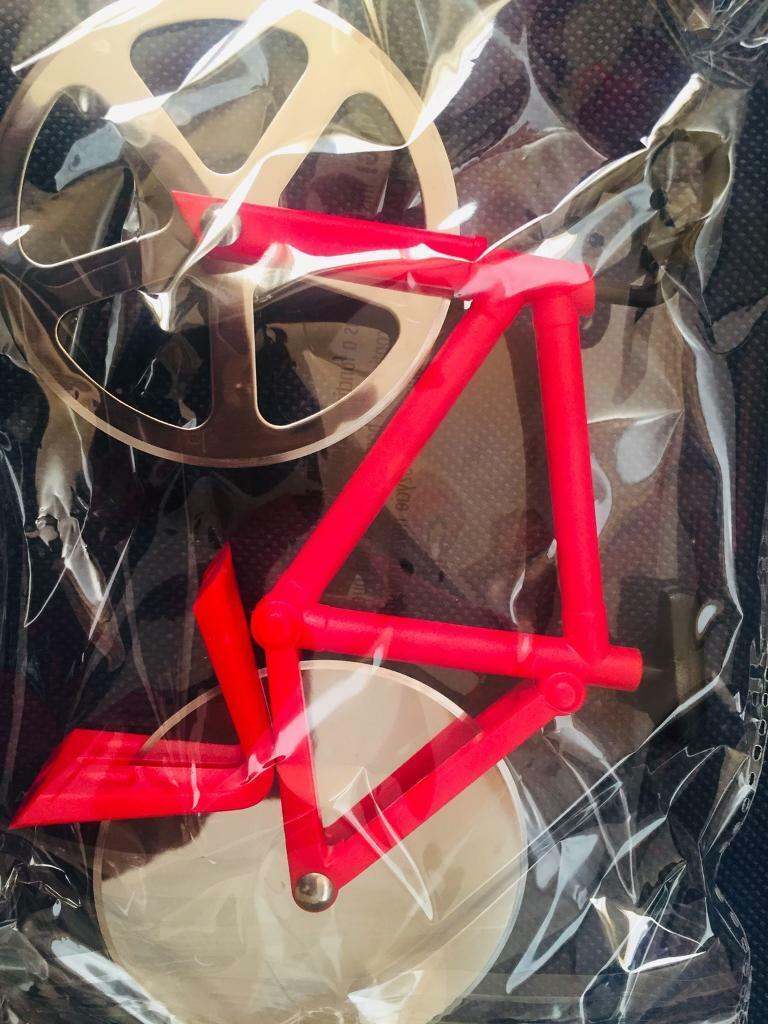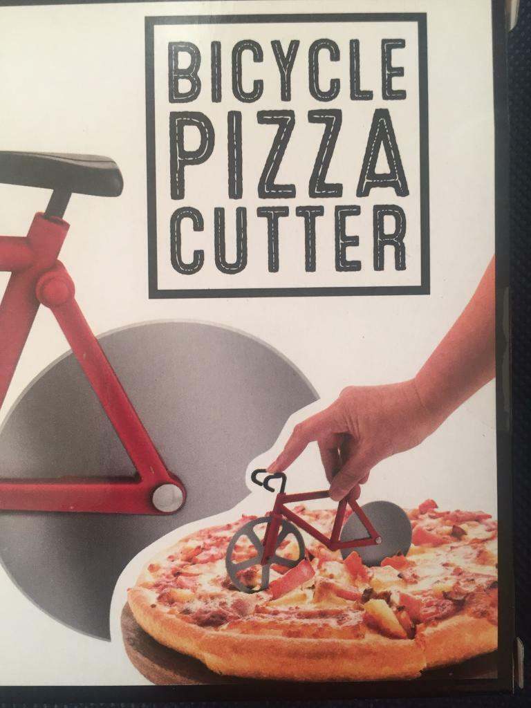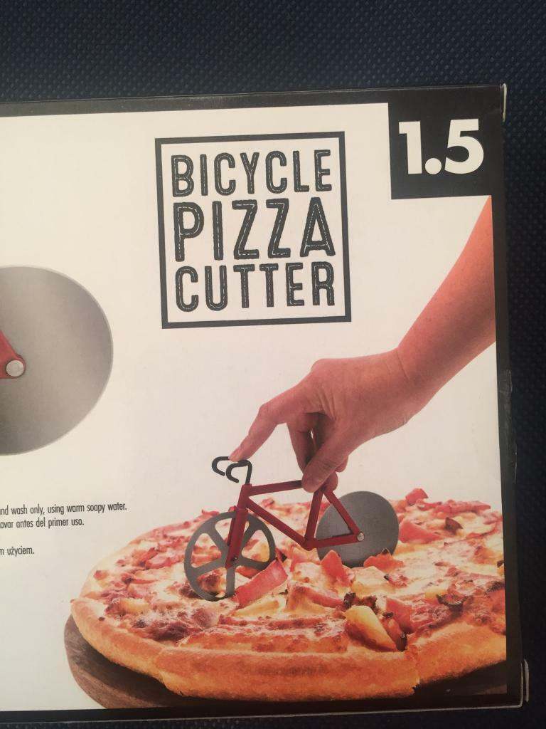Brand new bicycle shaped pizza cutter wheel roller.cutters slice chopper kitchen. Stainless steel bicycle.. and excellent condition..