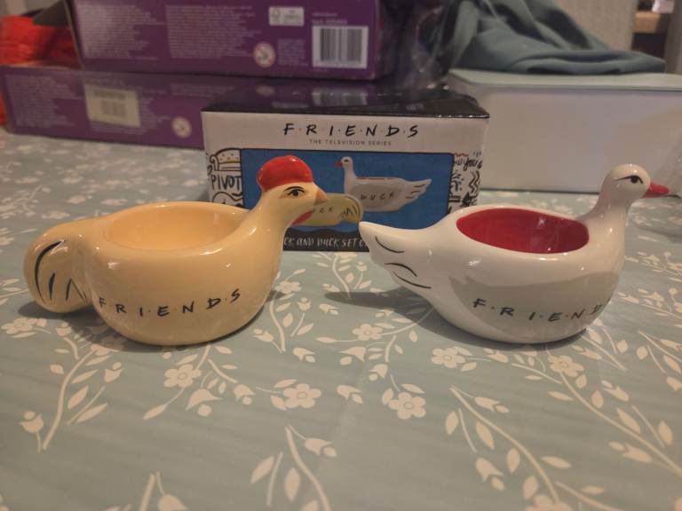 Chick and Duck egg cups (Friends TV Series) for sale. Never used. Buyer to collect from Trinity Fields in Stafford near J14 of the M6