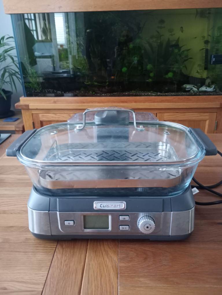 Cuisinart vegetable steamer in good working order but with a small chip on the lip of the glass dish.