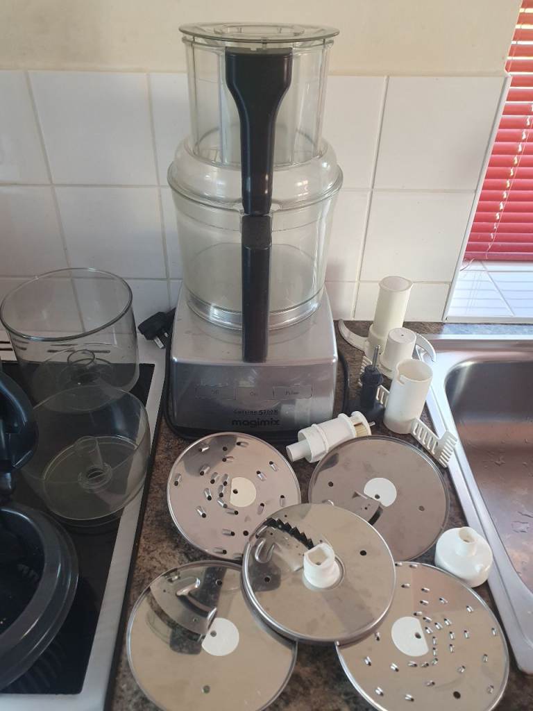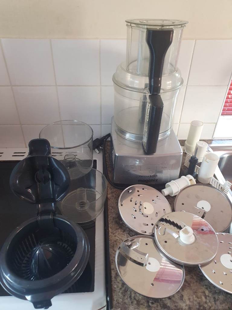 Kitchen mixer, plus many attachments for various food uses, cutting, chopping, mixing, stirring, juicing. Perfect working order.