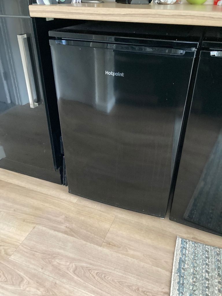 -Hotpoint under counter freezer standing Fridge standing Larder Fridge. Black gloss. Energy class A+. 134ltr capacity. 3 shelves. Crisper drawer.