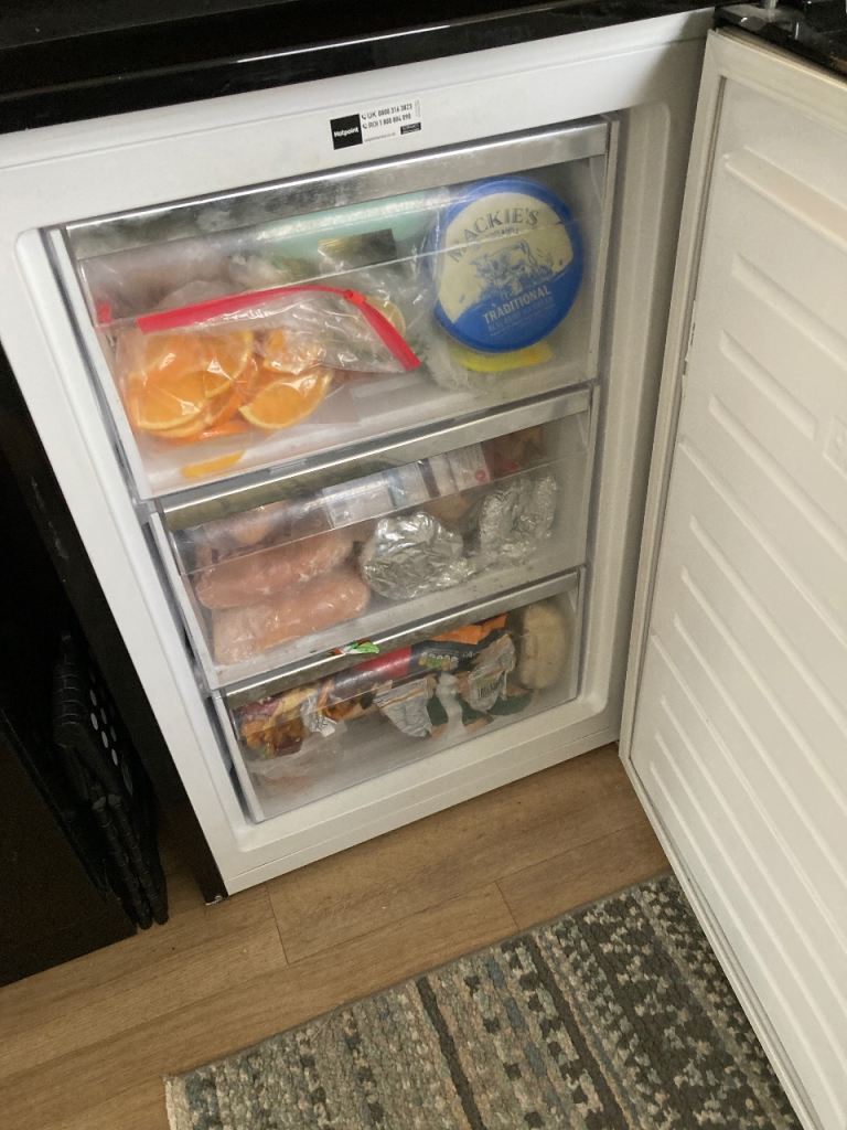 -Hotpoint under counter free standing Freezer. Black gloss. Energy class A+. 103ltr capacity. H. 83.8 W. 54 D 61.5