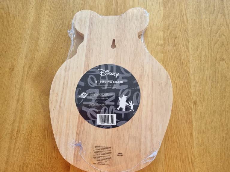 This 16-inch Cheese and Charcuterie Board is made of eco-friendly Parawood, 2 cm thick, and is shaped like Pooh Bear. It is from the USA and gorgeous but we will just not have a use for it. It is still new in the shrinkwrap so would make an ideal gift for a mum, friend or for yourself! Ideal for cheese, crackers, fruit, charcuterie, desserts and more - all displayed on Pooh, who would be sure to appreciate the proximity to all the snacks! For chopping use the reverse to preserve the front and there is a hole cut if you want to hang it on the wall. Retails here on Amazon for £35