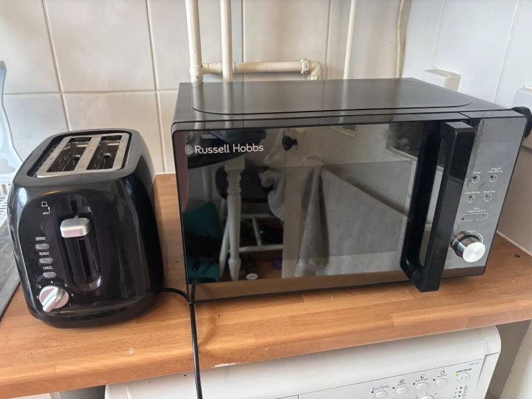 Russell Hobbs Microwave, Lakeland airfryer, glass led light kettle and 2 slice toaster bundle