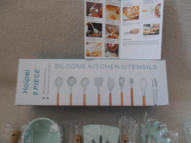 Silicone Kitchen Utensiles, 9 Piece Set, Boxed.