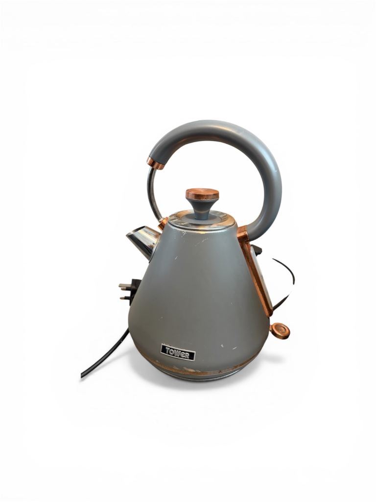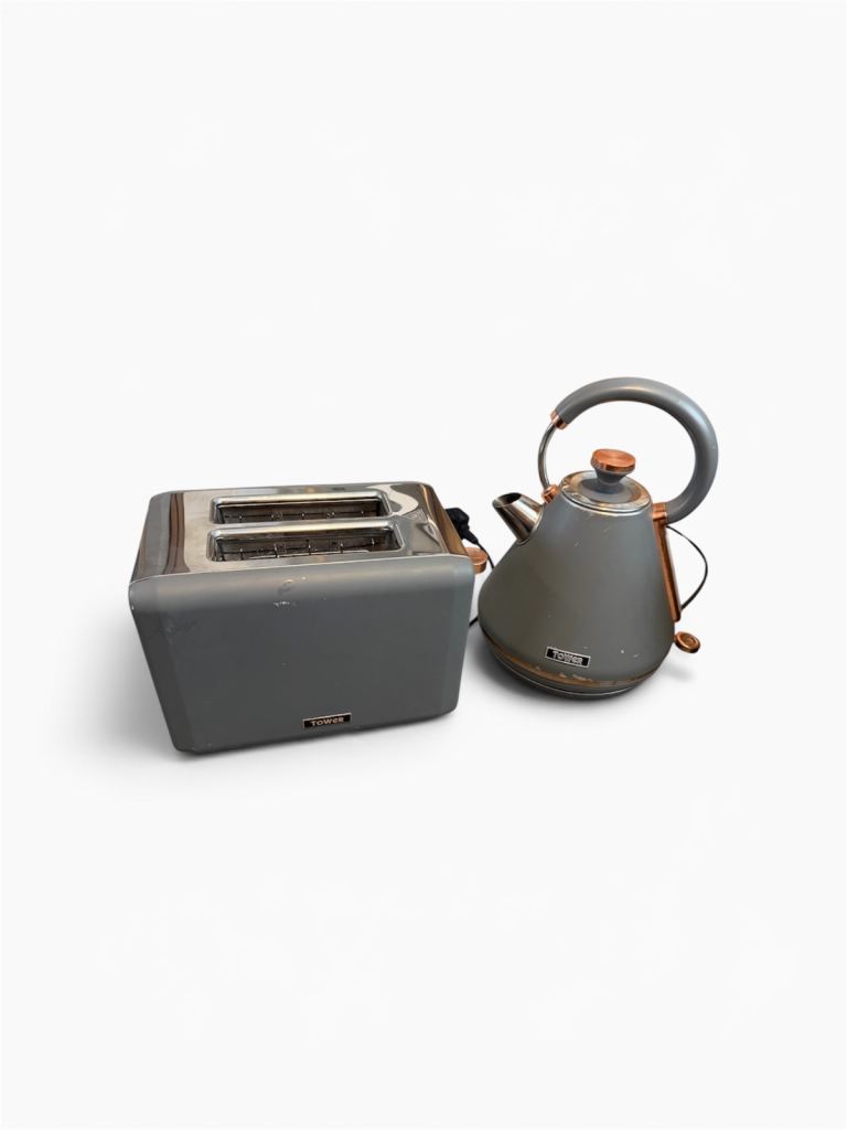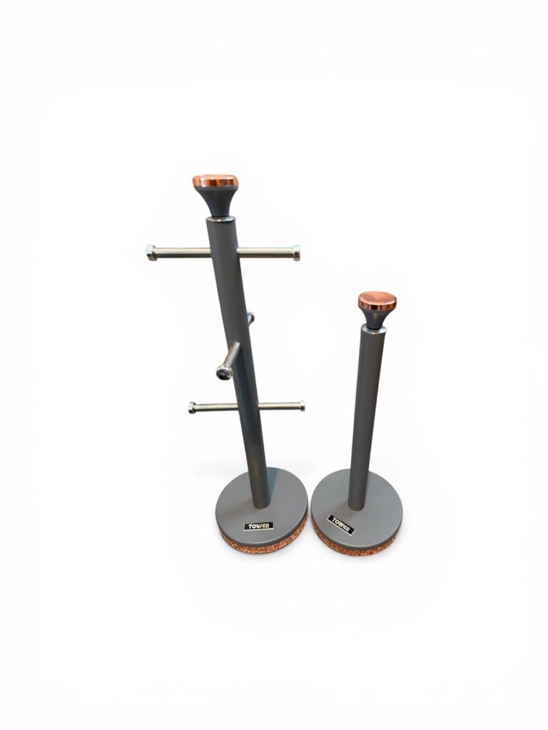 A matching Tower kitchen set in a stylish grey and copper finish.