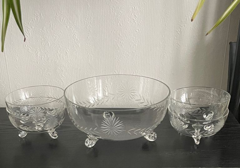 Posting for 17+ yearsVintage Set Of 5 Etched 3 Footed Desert Bowls’s