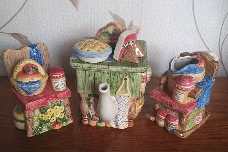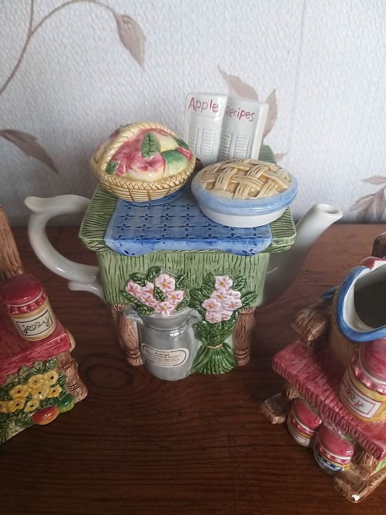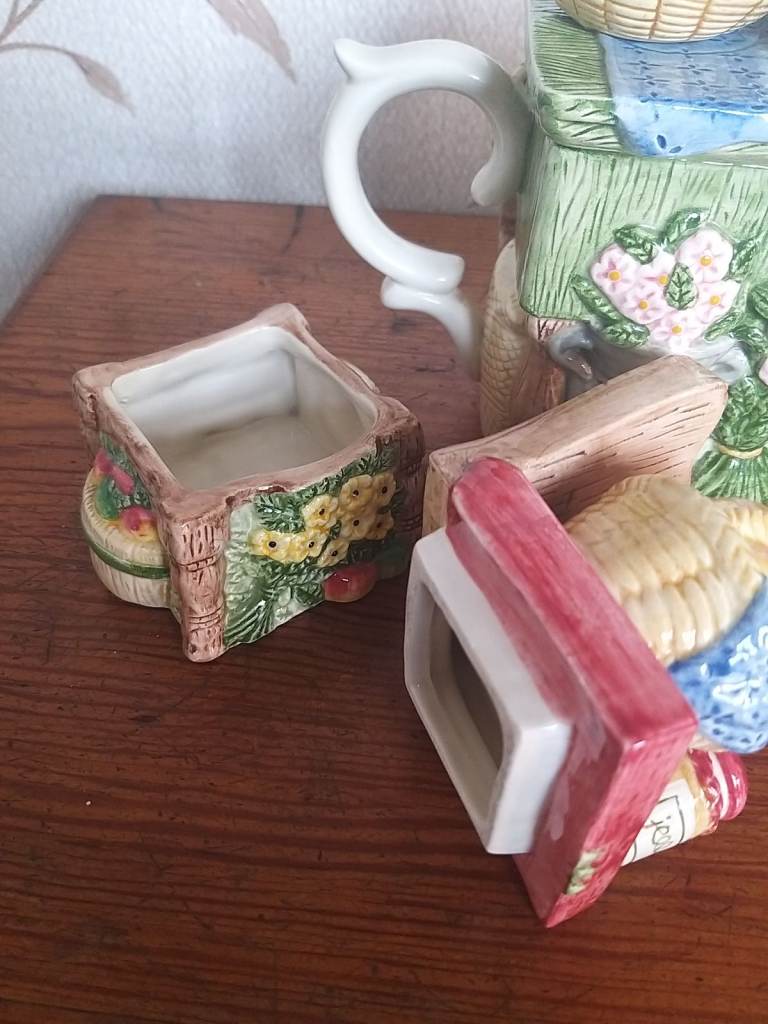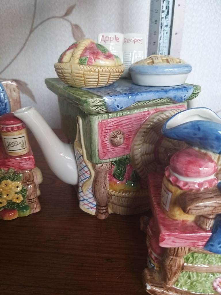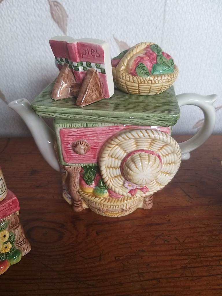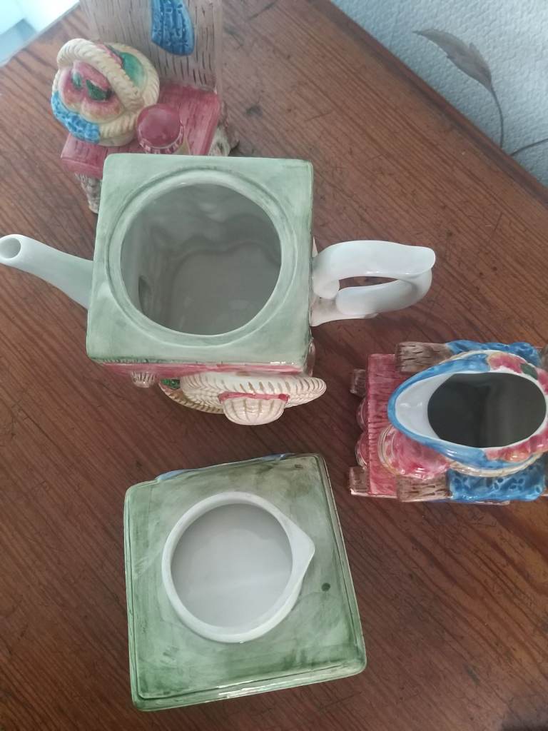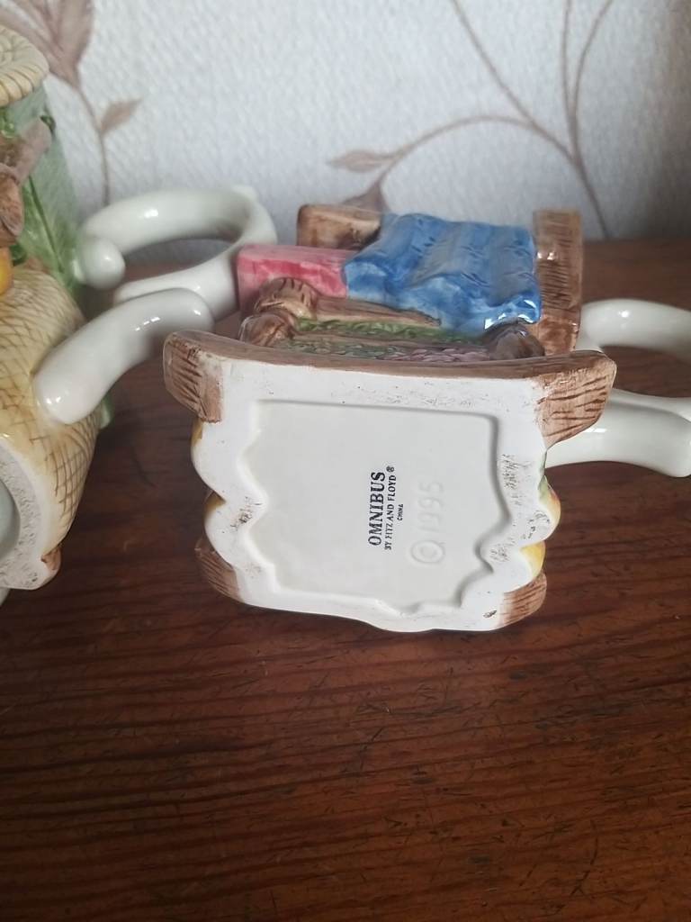 Omnibus fitz and Floyd vintage tea set. Good condition. Ceramic tea set. Each side shows a different 3d scene.