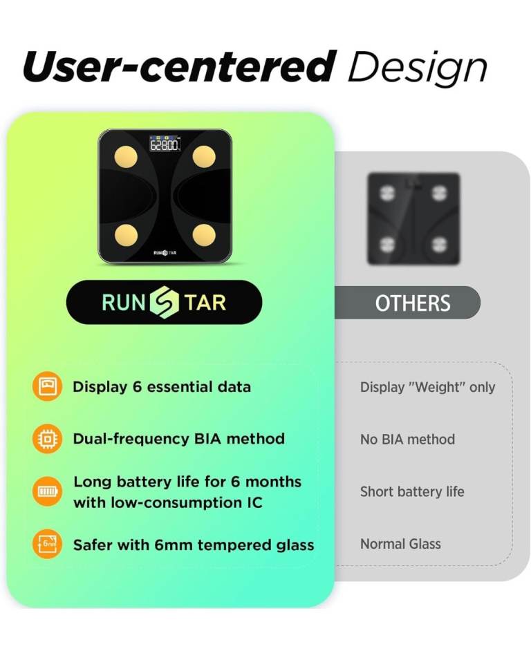 RunStar Smart Scale - 13 Body Composition Metrics, Bluetooth App Sync, NEW