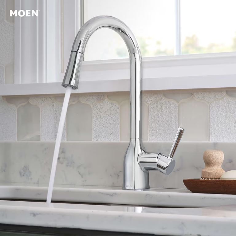 The sleek silver colour adds a touch of elegance to the kitchen sink area.