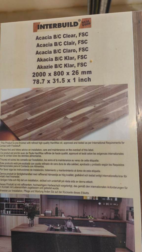 INTERBUILD SOLID WOOD WORKTOPS. 2 SIZES AVAILABLE