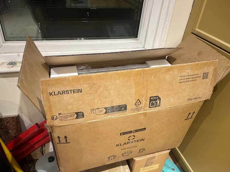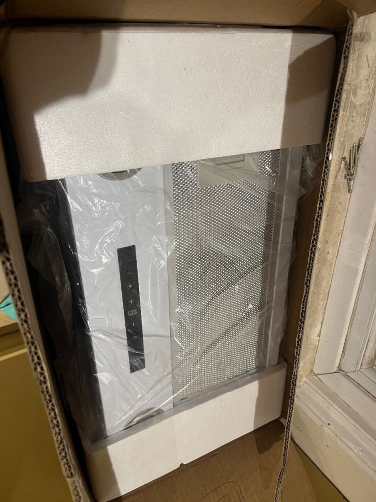 New, never installed, we changed our colour scheme and wanted a black one only bought a month ago. this one is WHITE With box and all parts and packaging . Paid £114