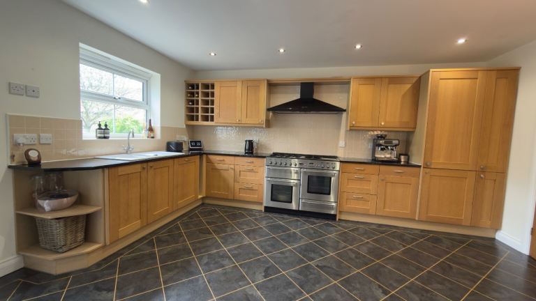 Offering a set of wooden sage green kitchen units