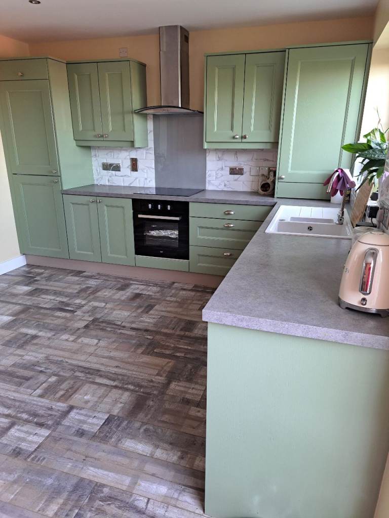 Posting for under a monthGood Condition Sage Green Kitchen Units .