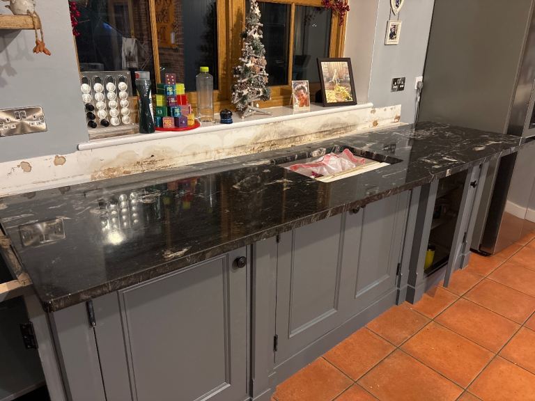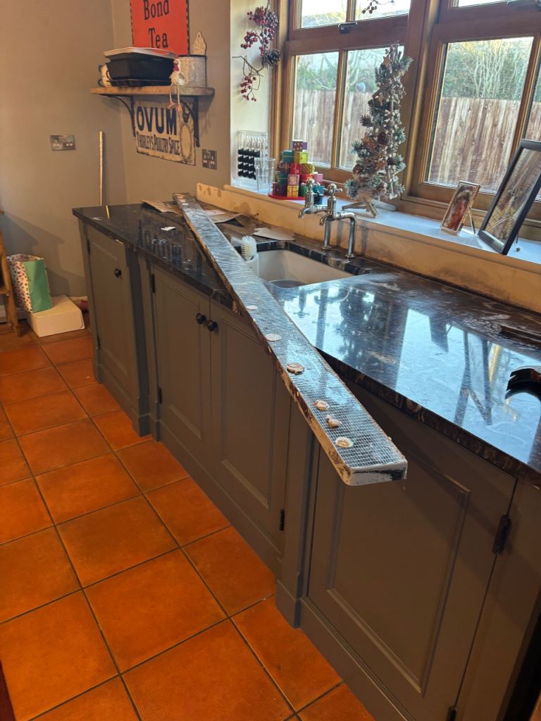 This is currently being removed from my bespoke kitchen.. it’s 8ft long 27” depth.. it also comes with wall plinth . It’s sits over our standard butler sink. Also has two tap holes. In perfect condition.. buyer collects (very heavy) will need a van.
