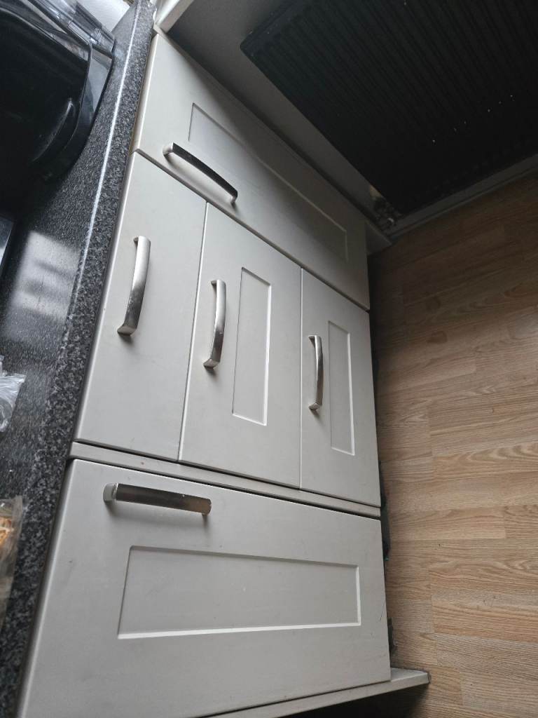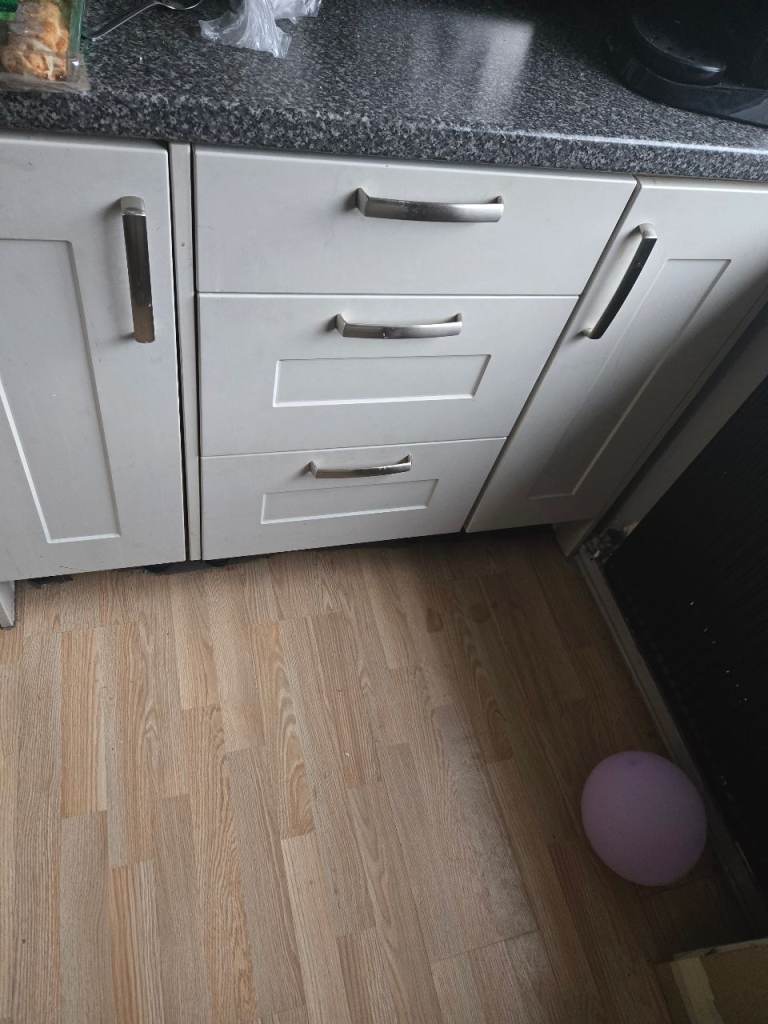 Set of fitted kitchen units in excellent condition, ideal for home renovations or rental properties. Includes: