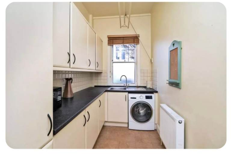 Cream coloured wood veneer kitchen and utility units, plus integrated hotpoint dishwasher, oven and Samsung fridge for sale in Morningside (not table and chairs.)