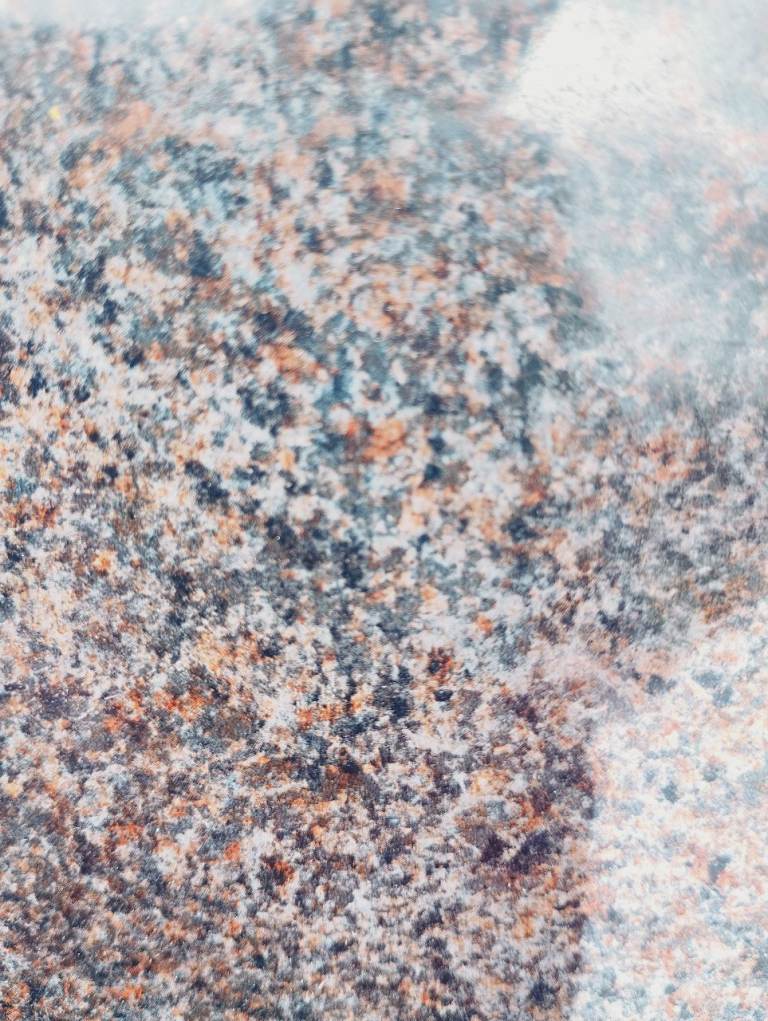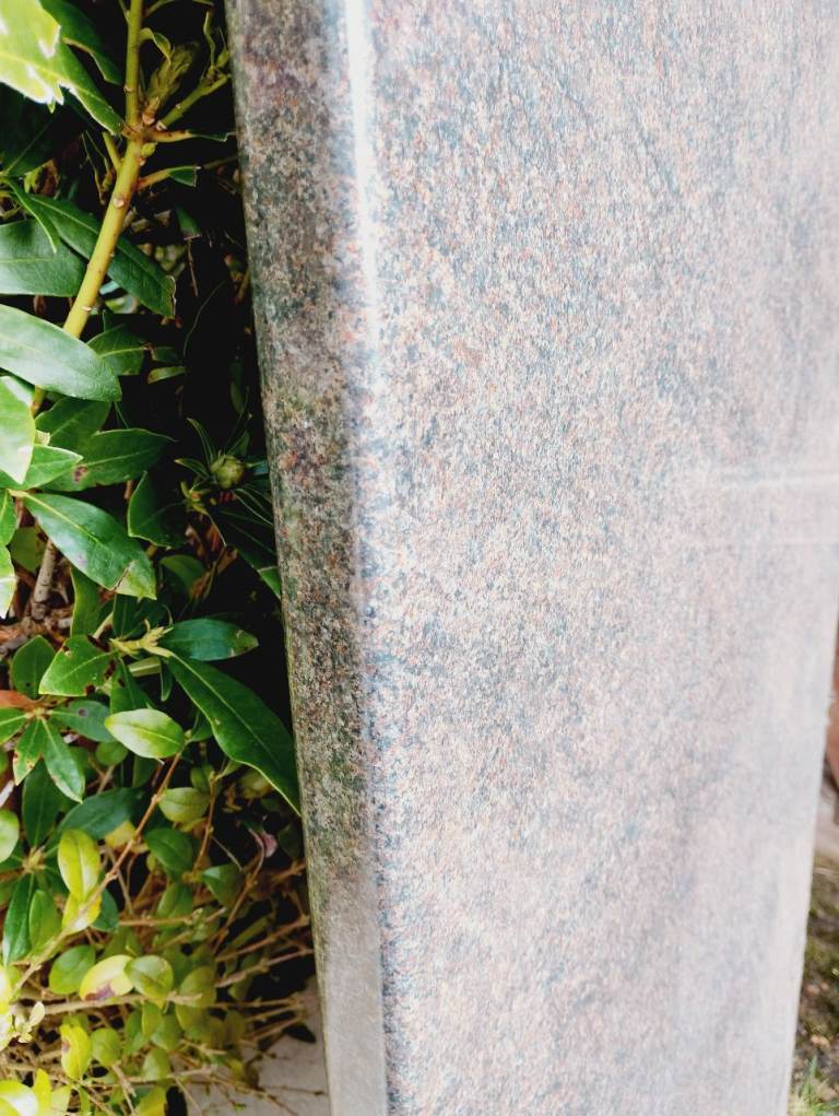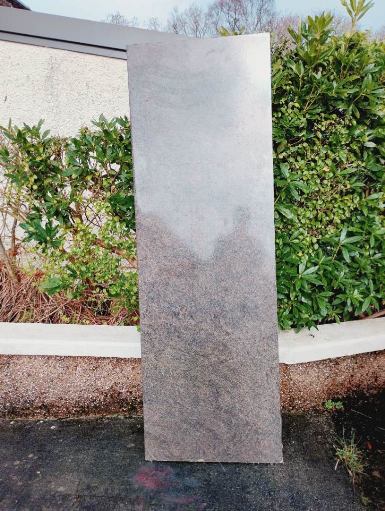 Length of kitchen worktop. 61.5 x 183cm, thickness 4cm. Speckled grey /brown granite effect. A few chips to one end not included in measurement. Free