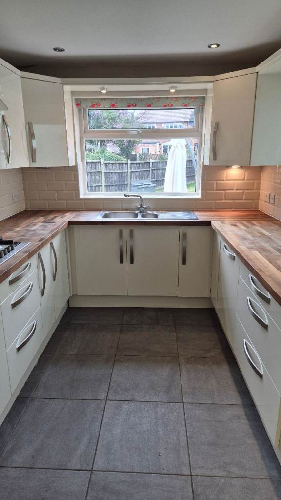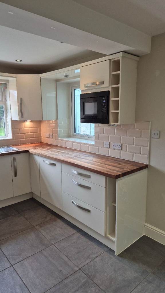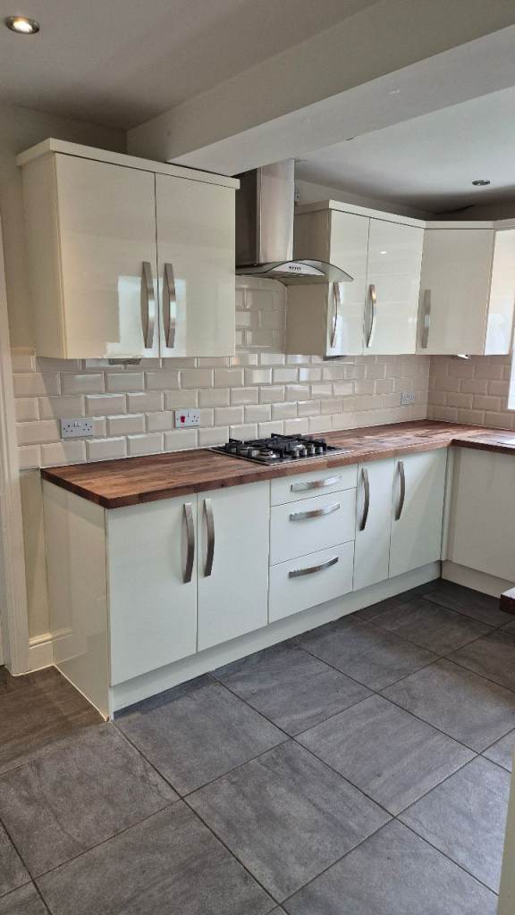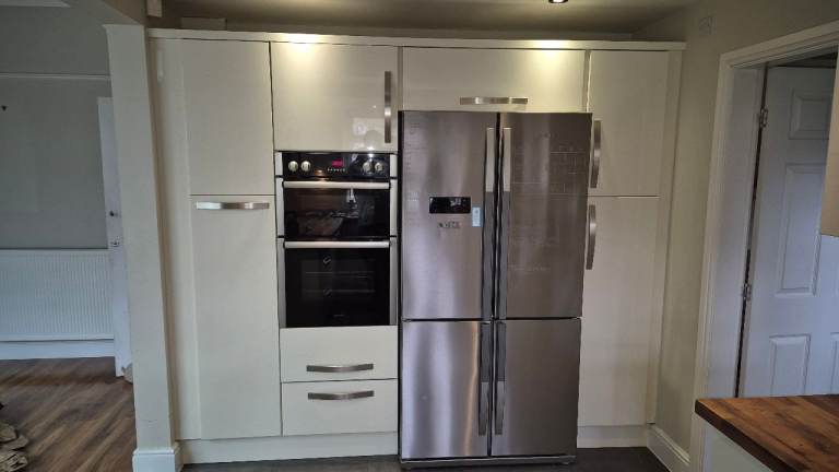 Complete gloss‑fronted kitchen in good used condition, including a large range of cabinets, pull‑outs, shelves and integrated appliances. Ideal for landlords, DIY renovators or anyone looking for a full kitchen at a great price.